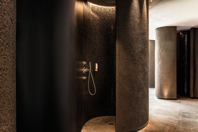 The architects created grass-covered volumes that emerge partially from the garden and arranged the spa’s rooms around a naturally lit open patio. They employed dark and pale walls to create an intriguing interplay between darkness, shadow, and light. The floor-to-ceiling windows bring natural daylight deep into the building whilst the subterranean environment allows places for private relaxation.