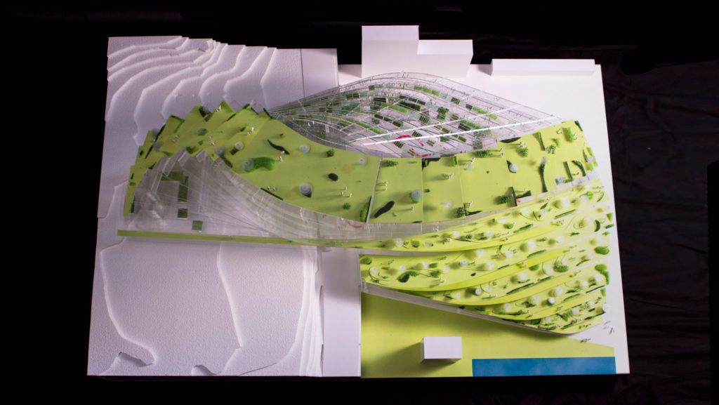 The Green School proposes a new approach to sustainable living by actively education about local grown food and by creating a multitude of green public spaces. The building encompasses a full lifetime of sustainable living: from kindergarten to high school, from college, dorms to senior apartments.