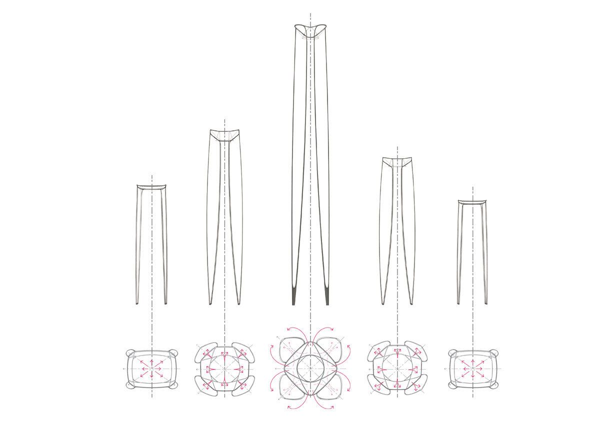 This separation in each part allows for a folding effect to occur in the surface of the building. It accomplishes this by allowing for a smooth transition from the flat surfaces on the north side to angled ones of a maximum 30 degrees on the south.