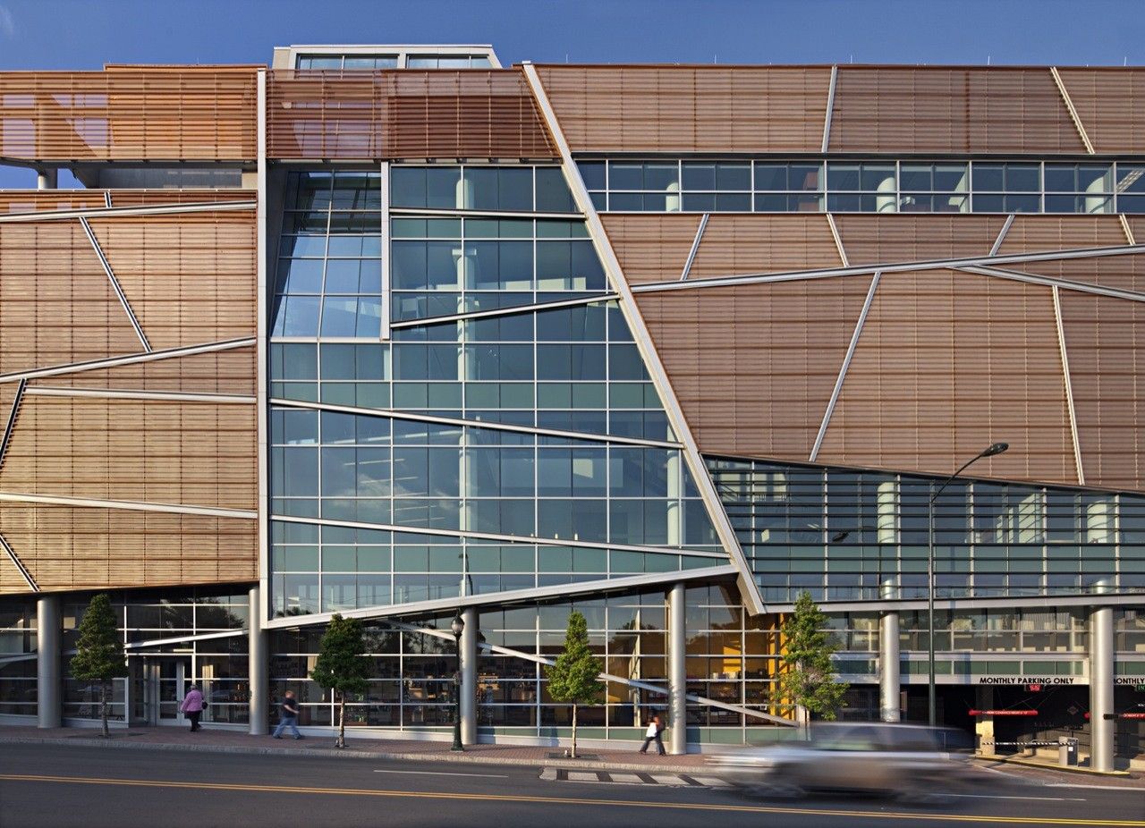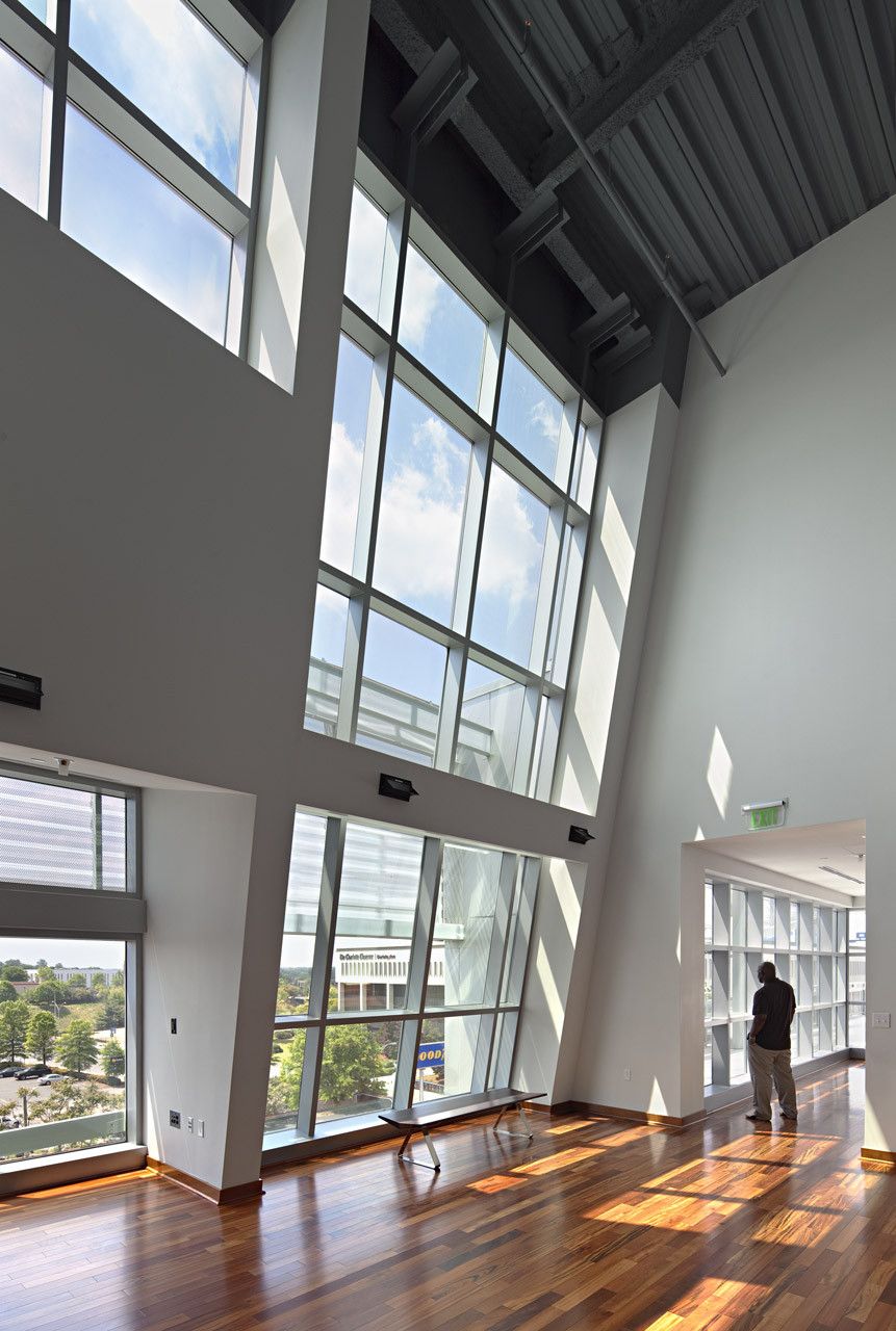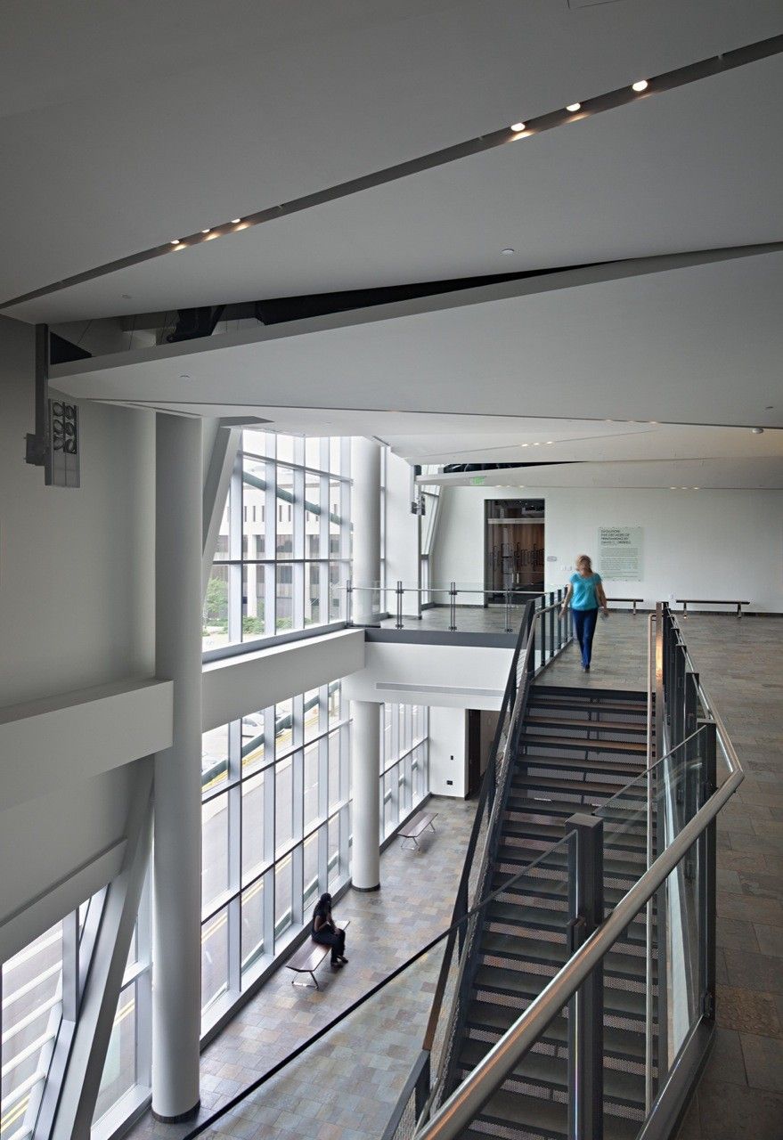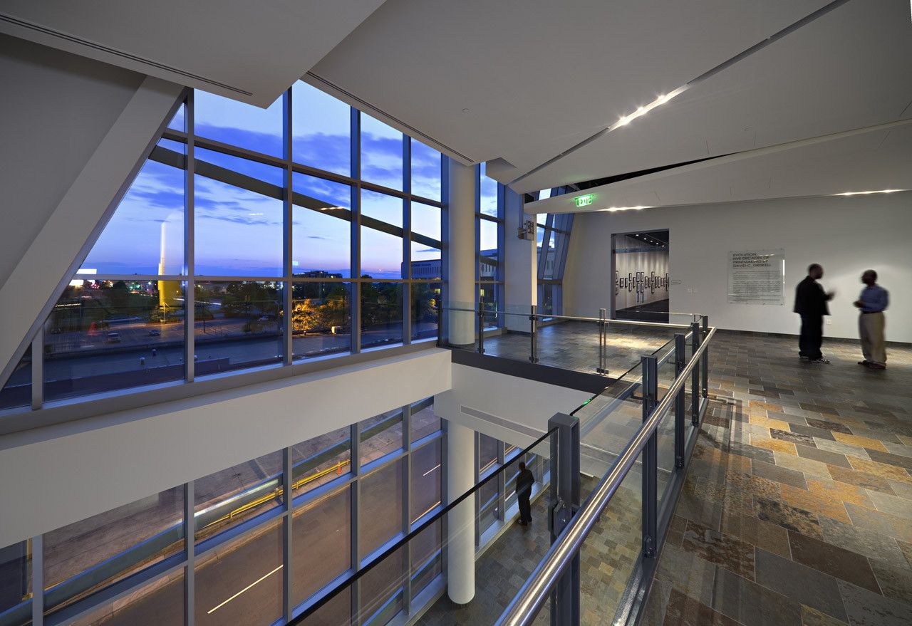 The Center’s stairs and escalators, together with the articulation of the central atrium, pay tribute to “Jacob’s Ladder”, linking the building to its historic context and to African American culture. Functionally, elevating the main lobby to the second floor allowed the truck and car ramps to enter the site without interrupting the logical flow of the building’s interior space.