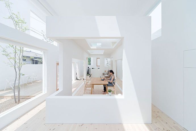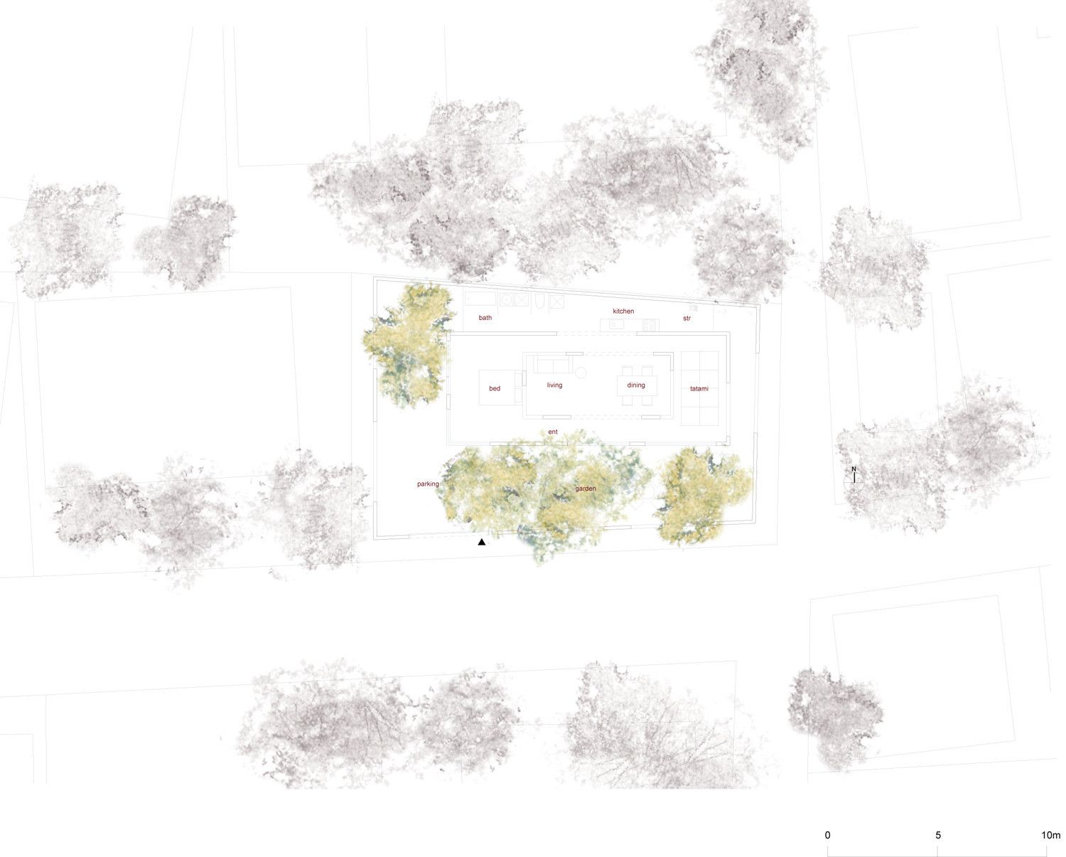 That is why life in this house resembles living among the clouds. A distinct boundary is nowhere to be found, except for a gradual change in the domain. One might say that an ideal architecture is an outdoor space that feels like the indoors and an indoor space that feels like the outdoors. In a nested structure, the inside is invariably the outside and vice versa. My intention was to make an architecture that is not about space nor about form but simply about expressing the riches of what are `between` houses and streets.