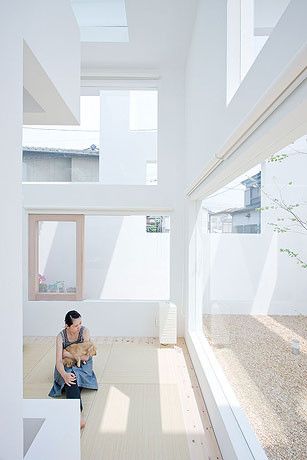 Designed by Sou Fujimoto Architects, A home for two plus a dog. The house itself is comprised of three shells of progressive size nested inside one another. The outermost shell covers the entire premises, creating a covered, semi-indoor garden. The second shell encloses a limited space inside the covered outdoor space. The third shell creates a smaller interior space. Residents build their life inside this gradation of a domain.