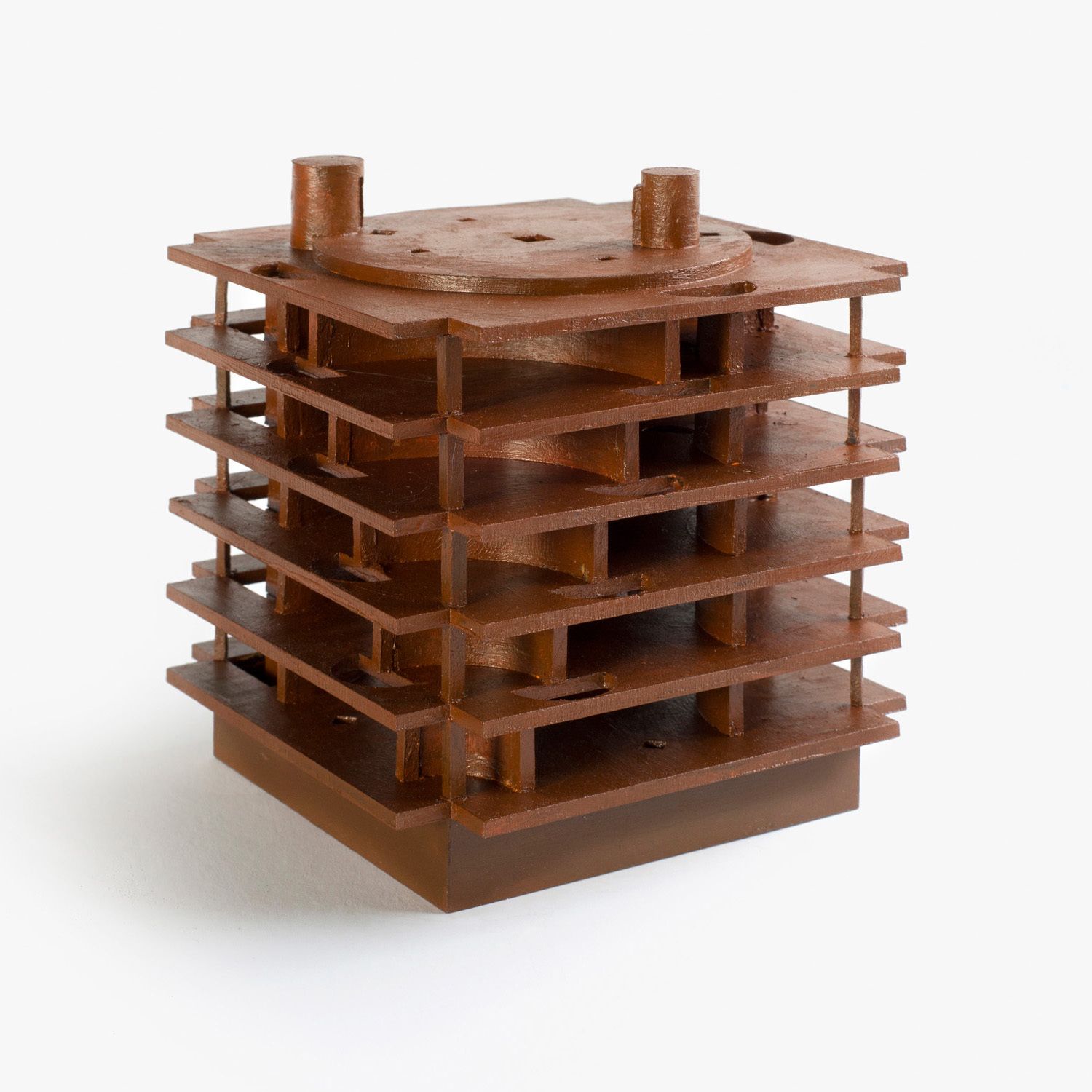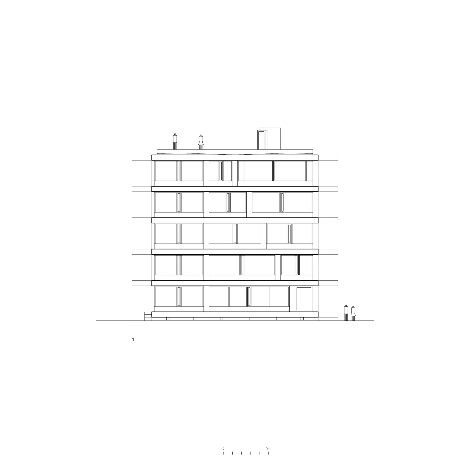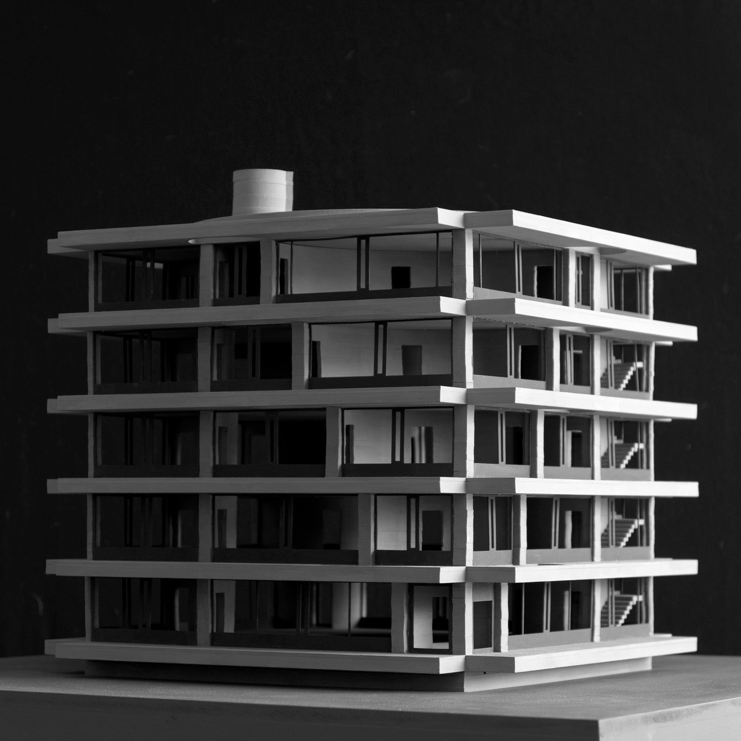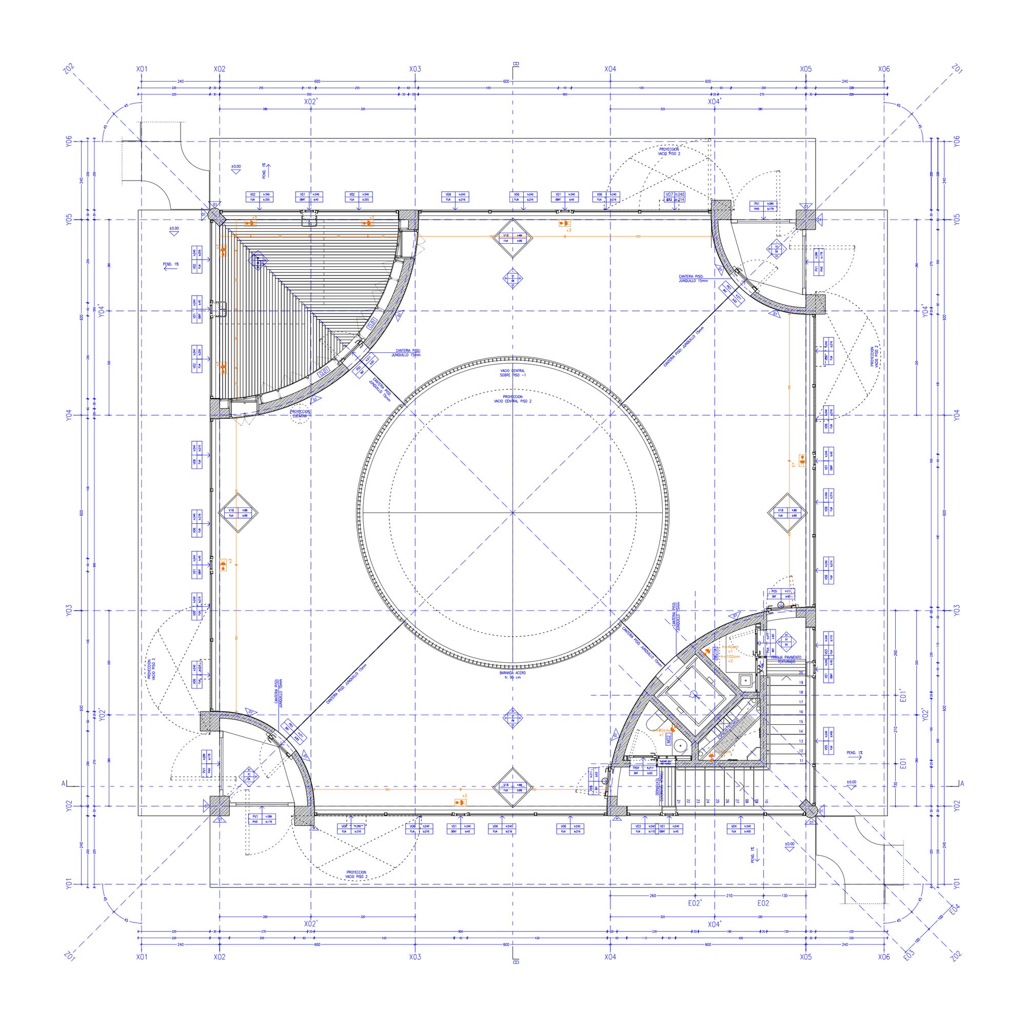 On the other hand, private working spaces occupy the corners of every floor plan, in a quarter of a circle figure which center pivots around every edge, growing inversely proportional to the central voids. Instead of the traditional system of pillars within a nondifferentiated and nonhierarchical grid, this office plan also provides specific rooms for exhibitions, workshops, and meetings, visual and acoustically controlled by the curved walls that work like opaque screens. The character and diversity of the resulting space somehow promotes the dynamics of a non-categorized work (or with ever-changing positions) between professors, students, researchers, entrepreneurs and the local communities.