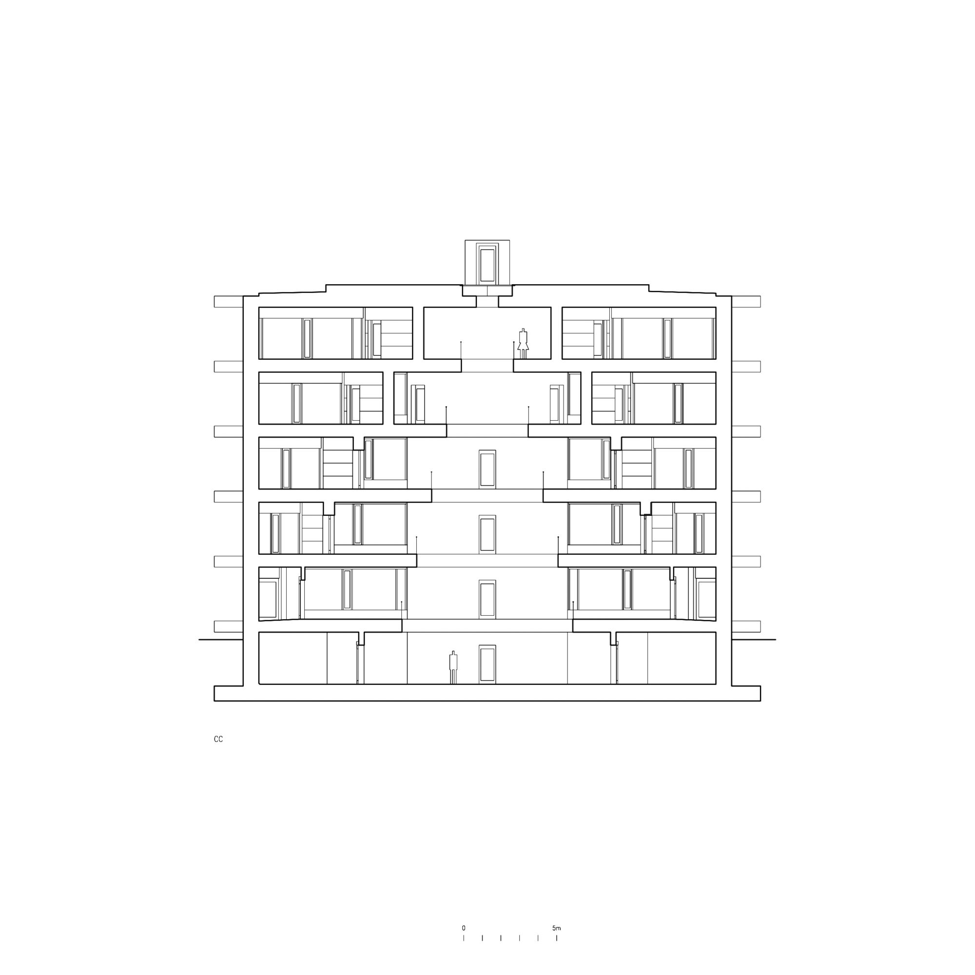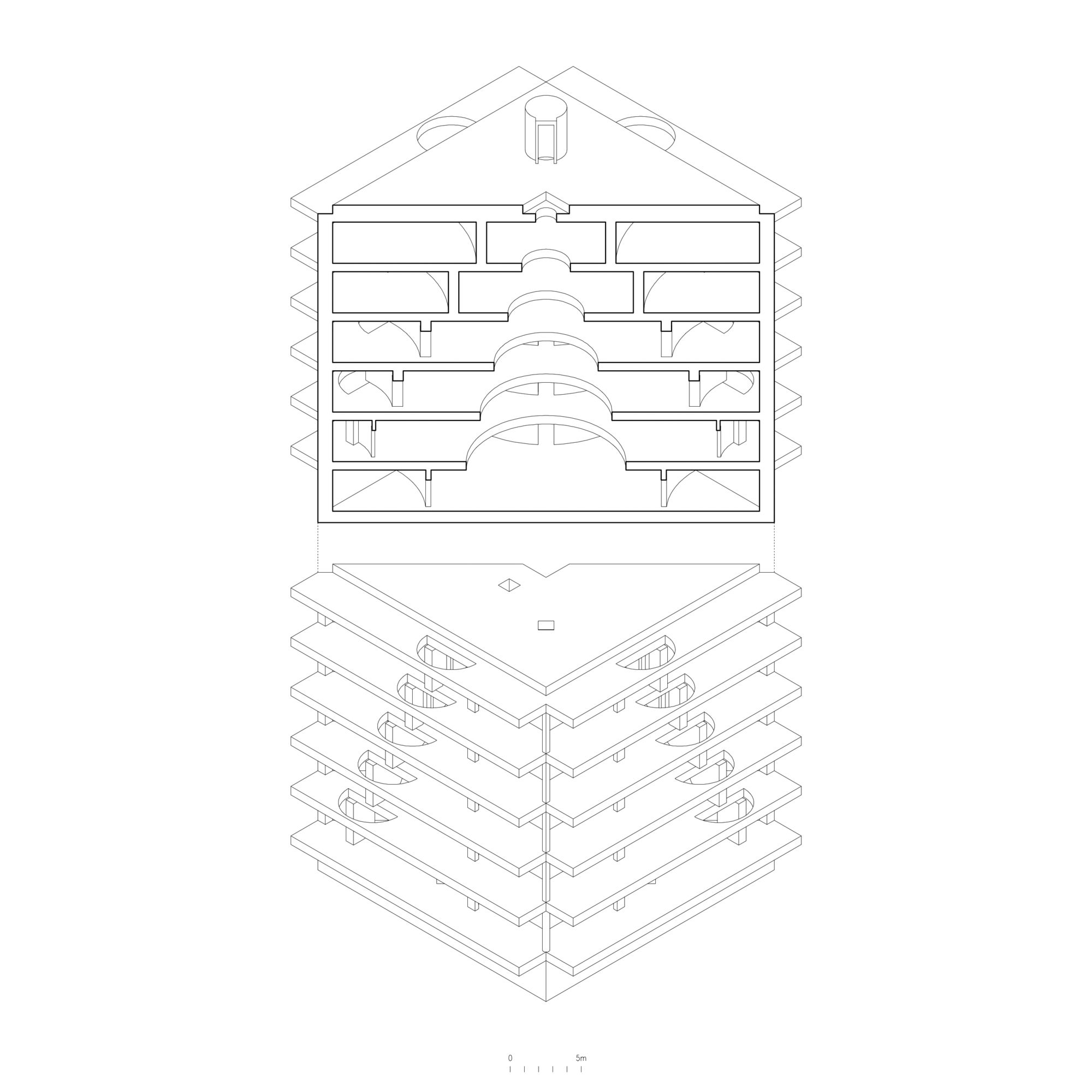 The building acknowledges the need for polarizing the innovation time in at least two moments: in a creative experience based on a social, collective and integrated realm, and another rather individual, intimate and solitary experience. The spatial structure of the building is based in these two clearly differentiated conditions. On the one hand side there is an open core that establishes a series of vertically interconnected halls, with a circular void that reduces its size upon ascension.