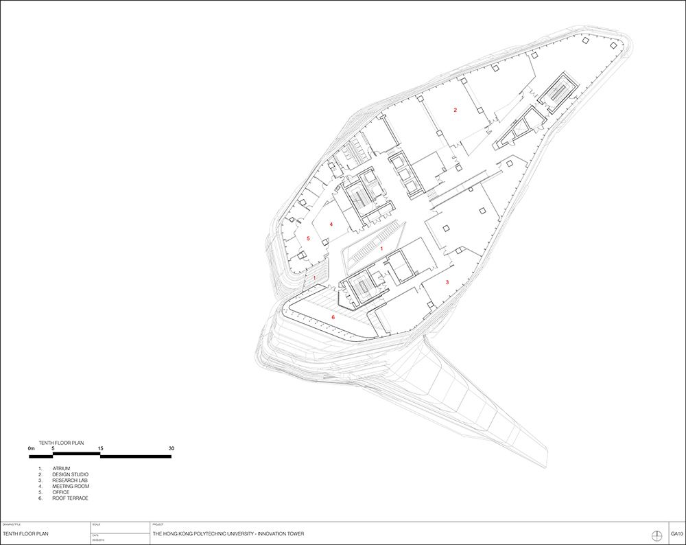Innovation tower is a 76 meter-high building that is designed to house the institution’s design school. This project, along with several others, is part of a strategy to turn Hong Kong into a leading design hub in Asia. In total the building’s 12,000 square meters will provide enough space to teach and train 1,500 students at a time in the art of design.