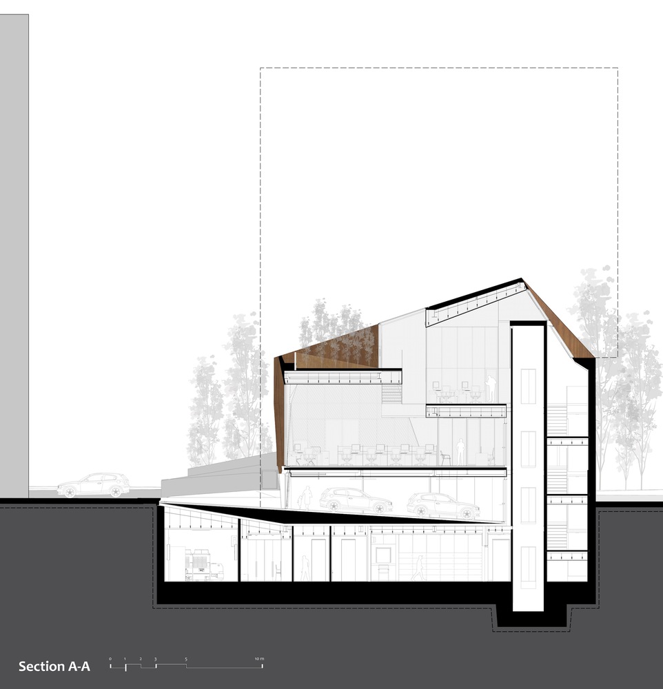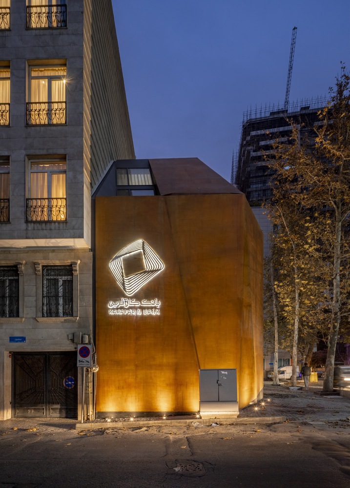 The culmination of the architects’ efforts is a creation that not only occupies a physical threshold between a bank and a residential structure but also bridges the gap between its modern surroundings and the historic villa it aims to honor. The Karafarin Bank project functions as a monument that, while asserting its uniqueness through scale and form, progressively forges a connection with the heritage of the old villa. It embodies the duality of a cherished metal chest, gradually adorned with the patina of time, and an architectural relic akin to the mansion that once stood on the same hallowed grounds.