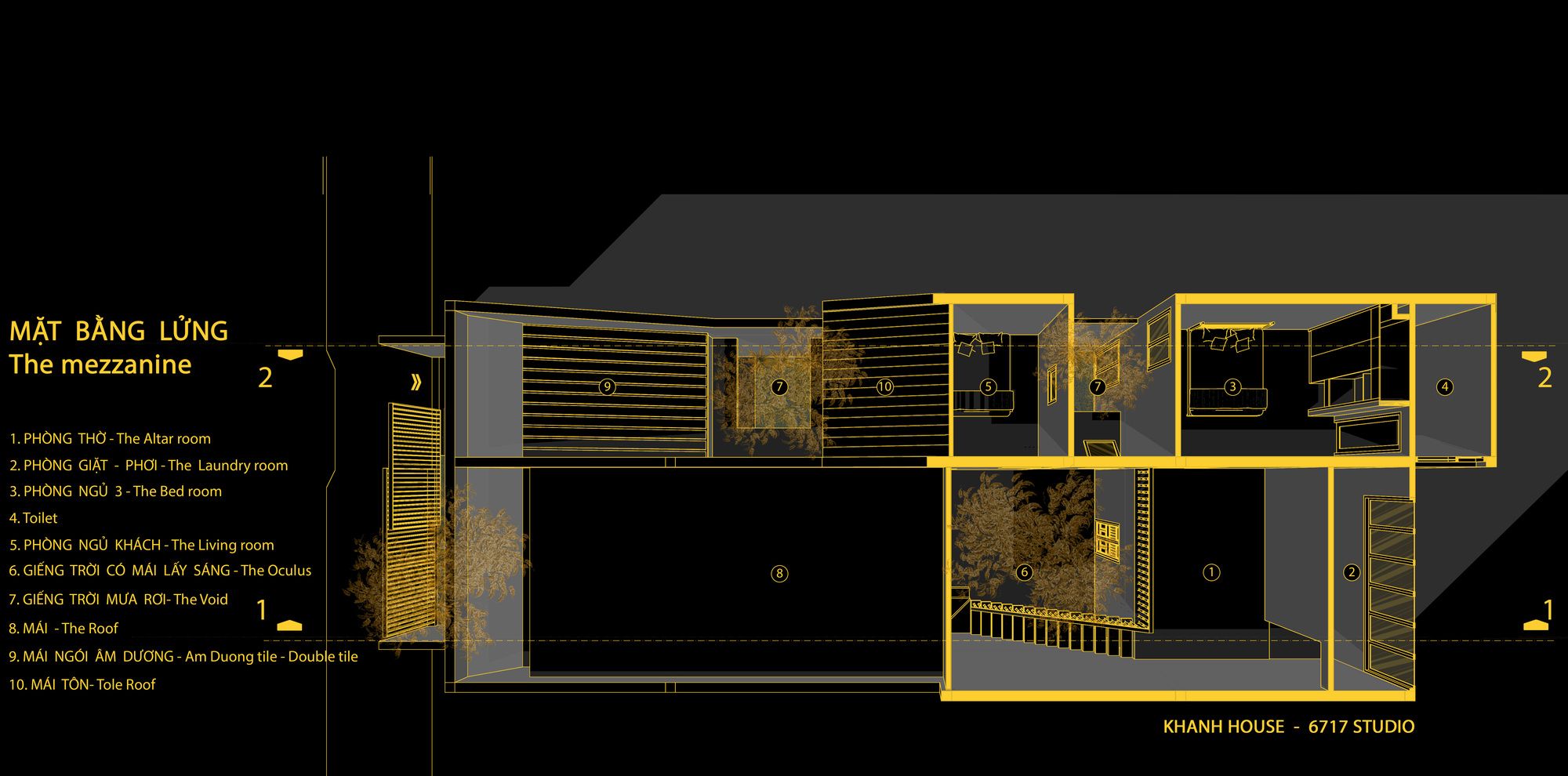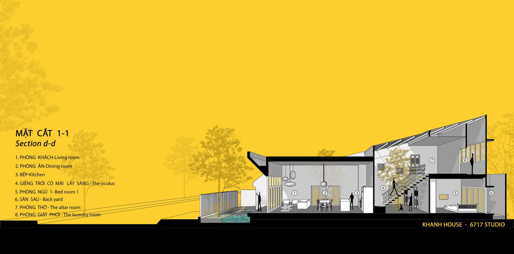 Therefore, the Khanh House looks so familiar at the first expression. Besides, almost of spaces can view the little garden so the members of the family can enjoy the beauty of nature. The green spaces help Khanh House get bright and get the wind go to the inside of the house. In addition to, the Oculus seems a heart of the house. It is laid out between the active zone consist of living room, kitchen, dining room and the quiet zone such which is a bedroom. The function of the area using for relaxation also so the members of the family can enjoy the wonderful time together.
