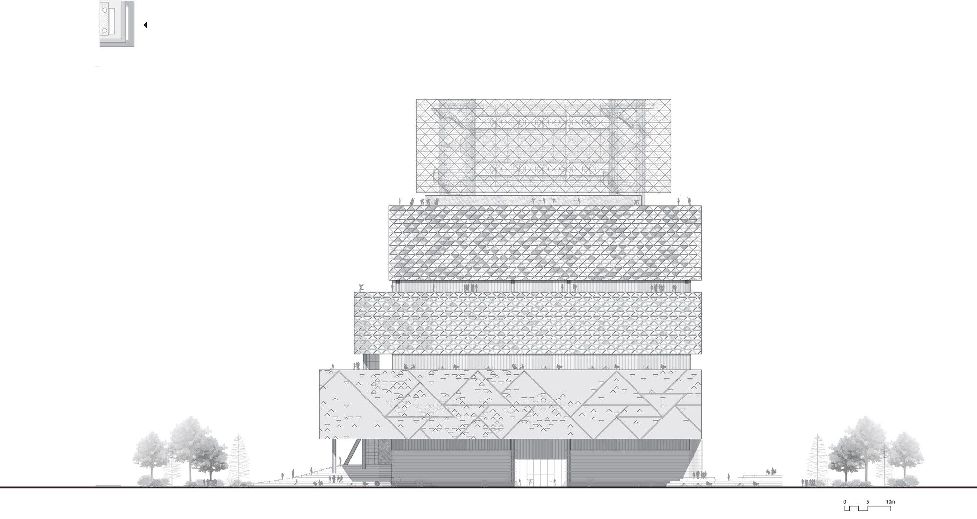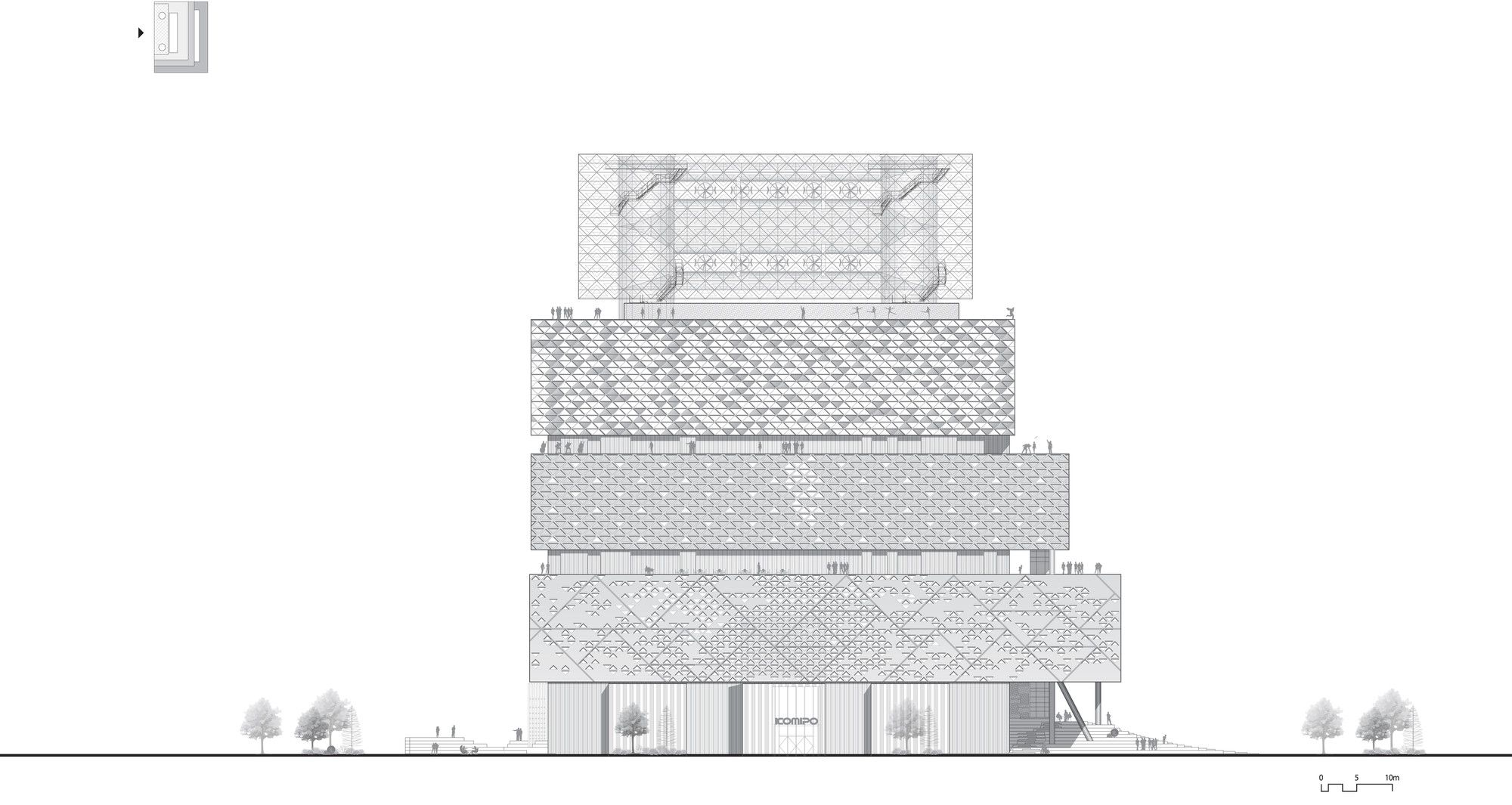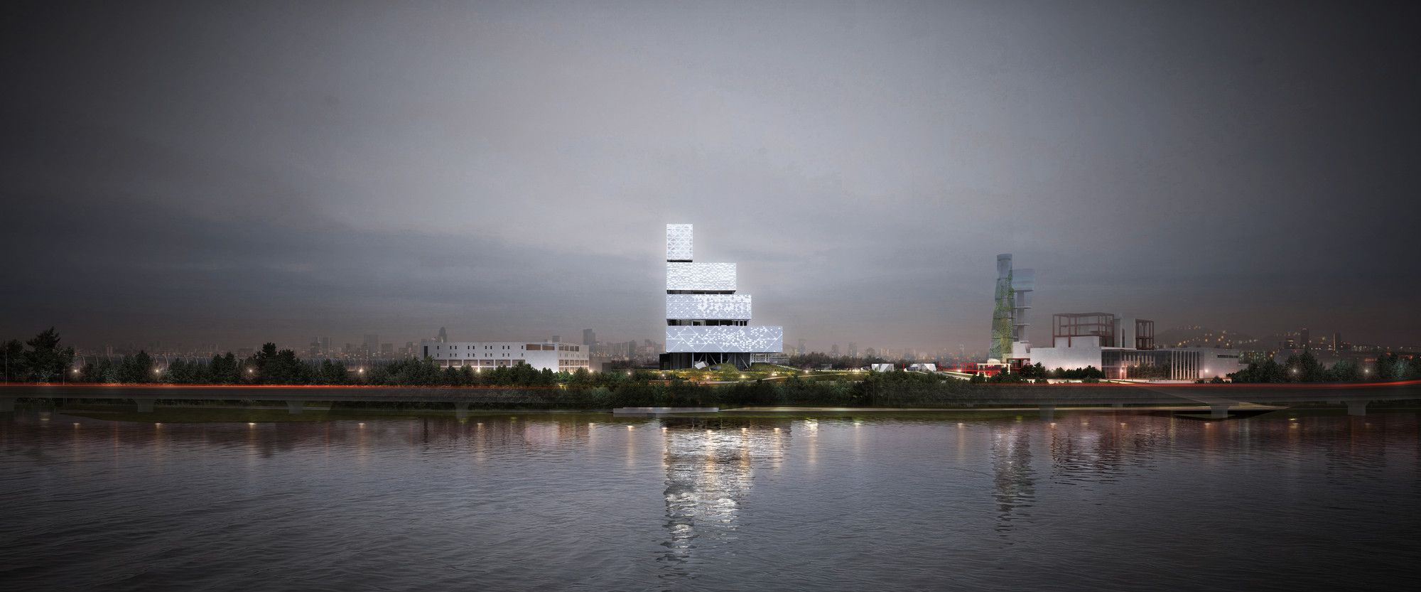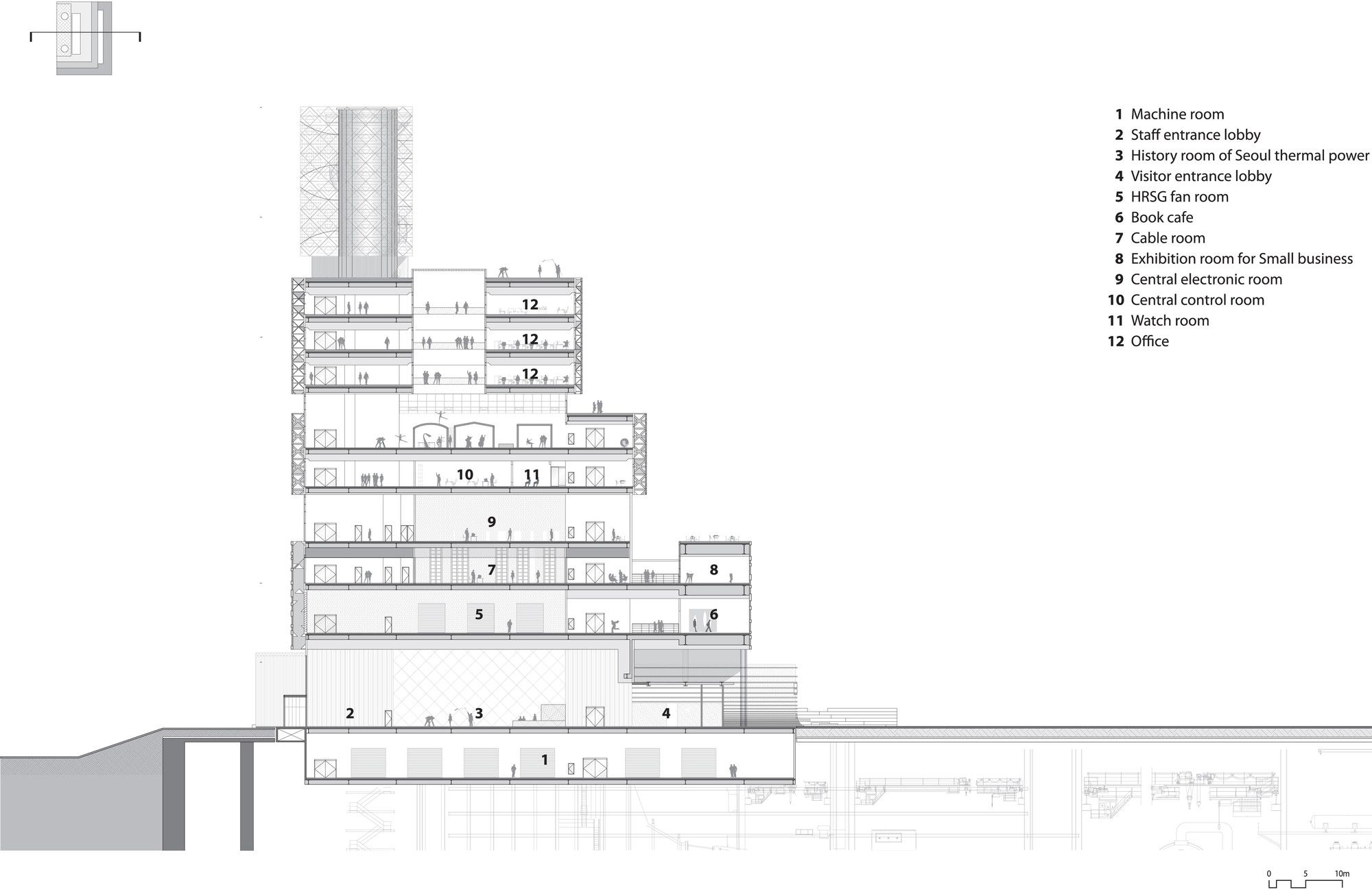 While replacing the Danginlee, the new design takes on a tower-like structure; the four stacks of building volumes are centered around a 100-meter-high chimney. This arrangement makes the plant’s ventilation element the central part of the design; thereby, acting as a monument to the old plant.