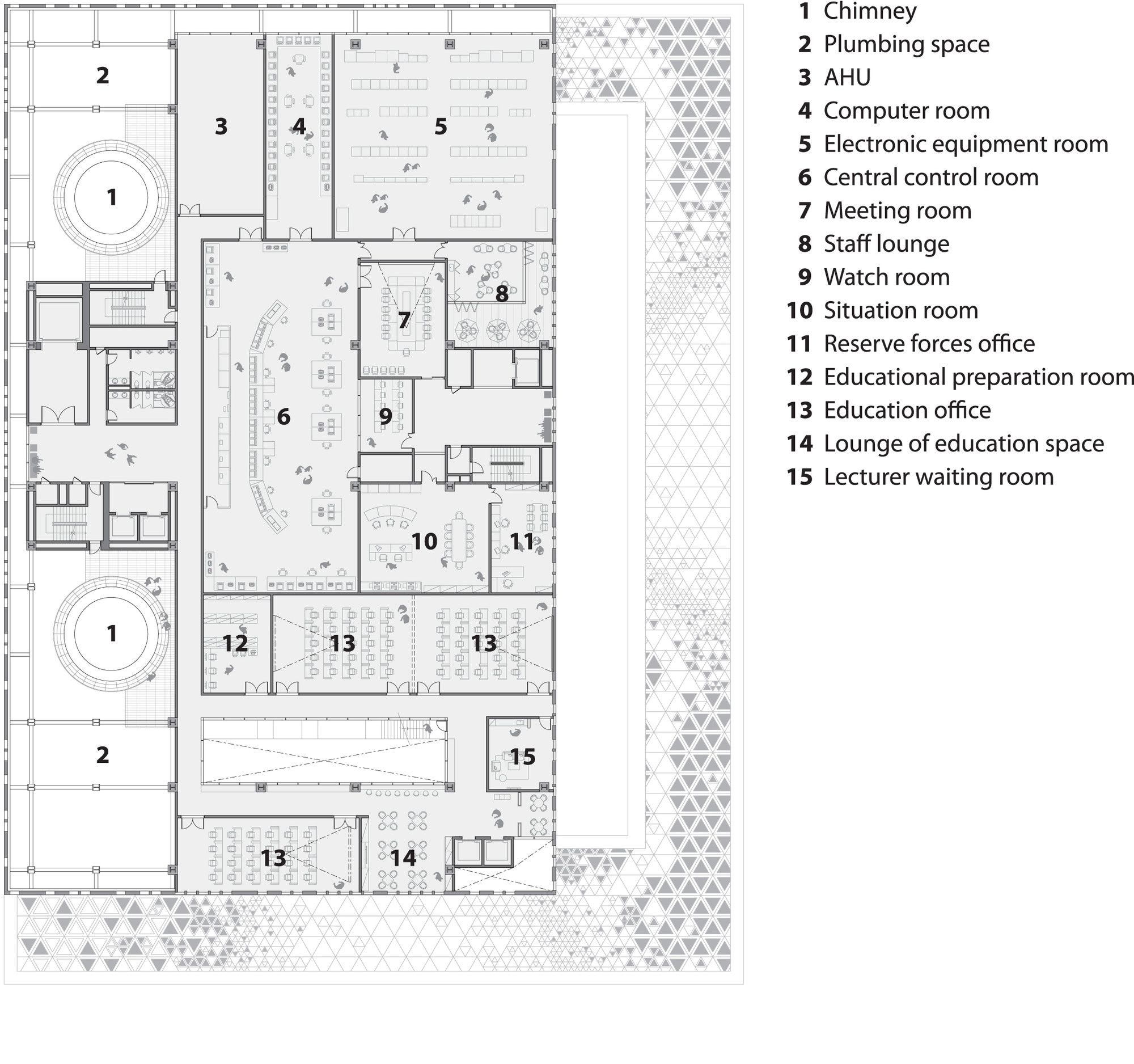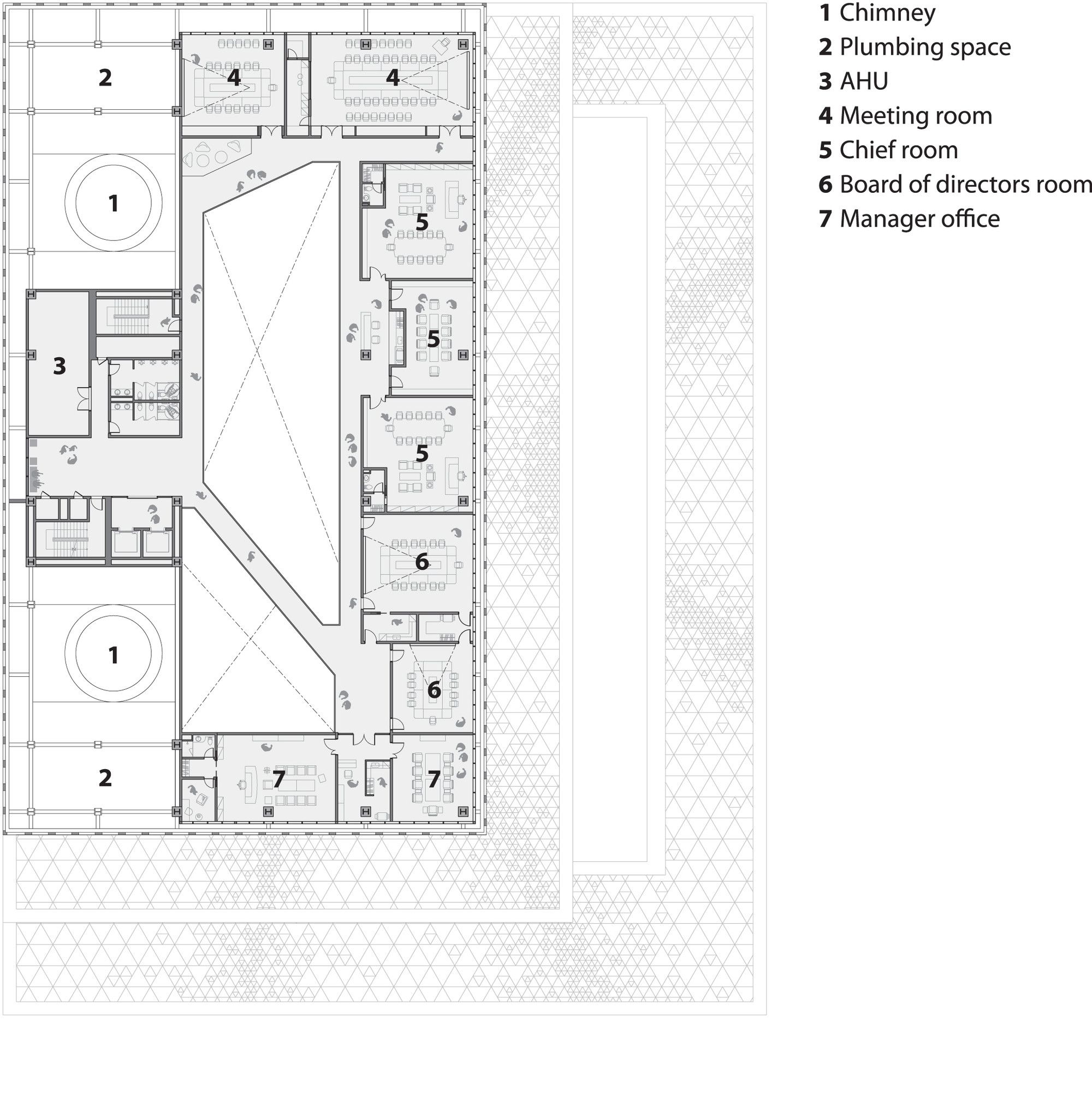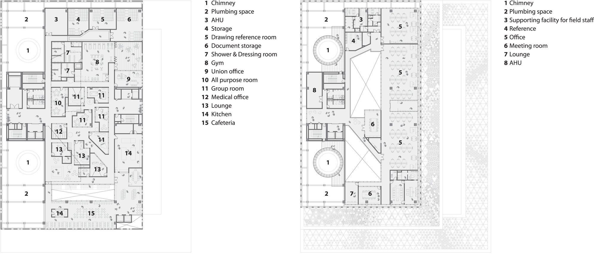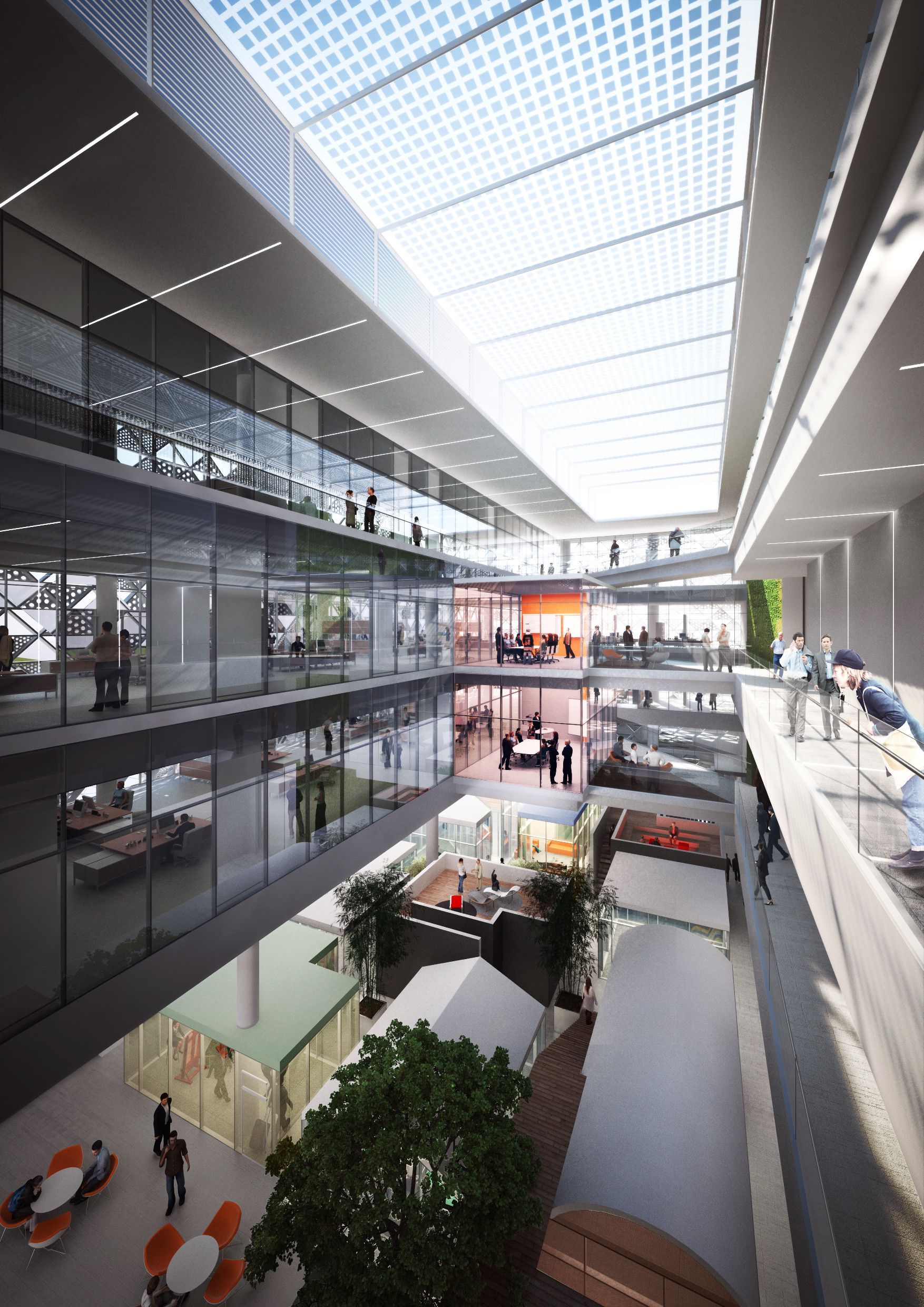 When placed in the center, the ventilation stack masked from view allowing for a less industrial look of the building. The massive concrete walls of the building, rising up to 18 meters, will have a stone cladding recalling those of the old plant. The walls are to be surrounded with art galleries and exhibits attracting the public to the building making it a “Culture Plant.” The new image proposed by the architects is more appealing to the public; it is meant to draw in workers as well as citizens and to create a dynamic atmosphere for people to learn, work, and enjoy the other programmatic functions.