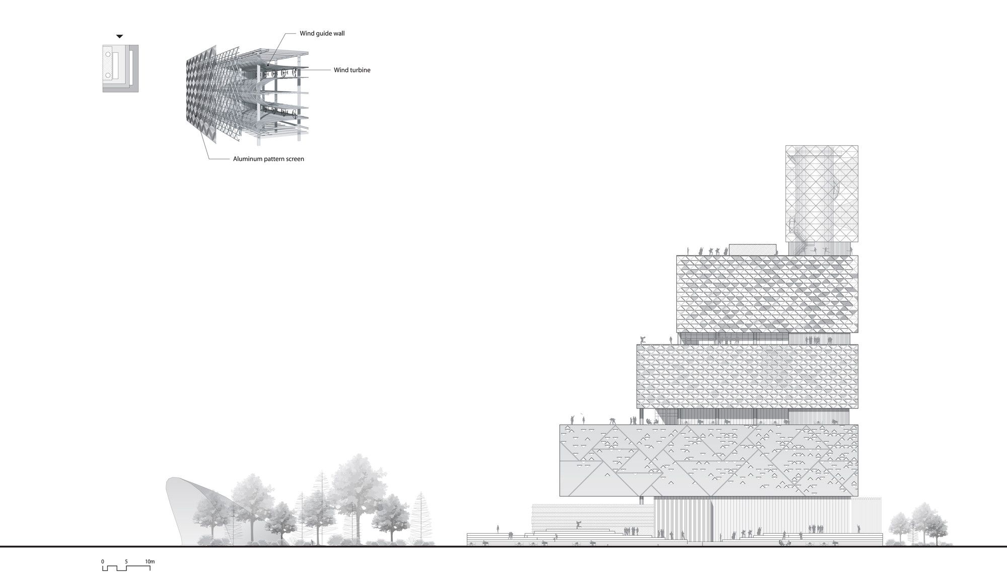 The proposal changes the standard idea of a power plant; the design is very dynamic and modern, with parks and restaurants for the workers and the public, thereby, driving the building far from the industrial feel of a power plant. The project is designed to replace the Danginlee, South Korea’s first power plant constructed in the 1930’s, while memorializing its importance.