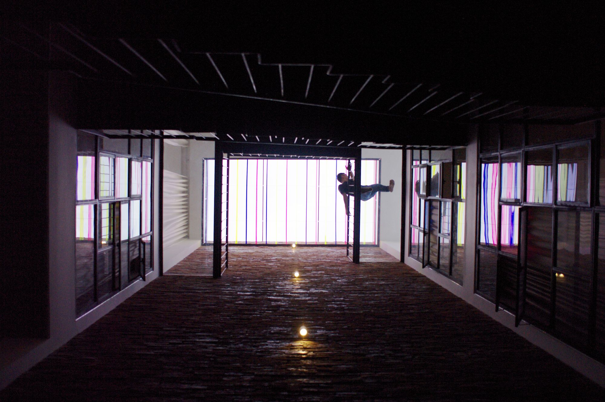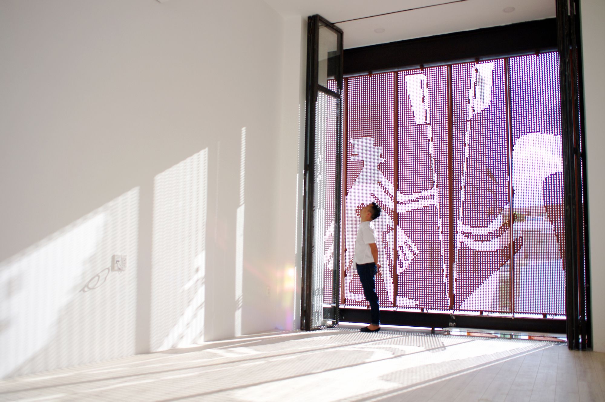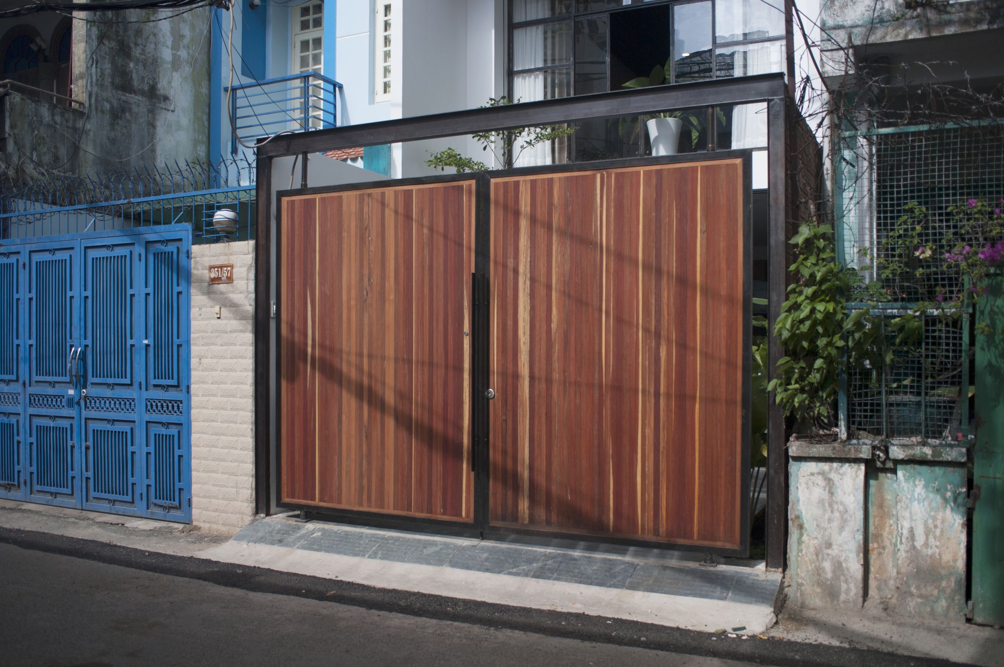 Bright colors, often time seen in Vietnamese traditional decorative arts and architecture are used for the glass windows facing the courtyard and the glass beams above the light well. These accent colors liven up space with dynamic reflections/ shadows and create a sense of playfulness, especially for the two ‘young adults’ in the house. The West-facing façade is designed with a system of automatic door-sized louvers, protecting the house from the severe tropical sun in the afternoon; the air inside is cooled down as wind pressure is changed when passing through the tiny holes on this facade.
