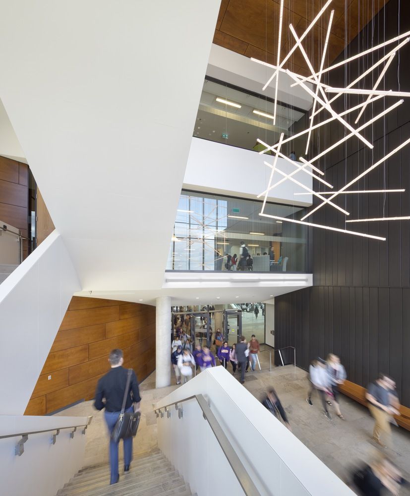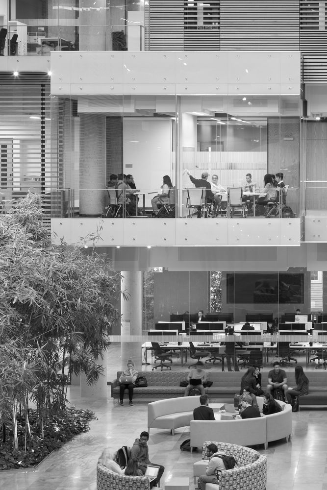 Designed by Diamond Schmitt Architects, Lazaridis Hall is the new home of the School of Business and Economics at Wilfrid Laurier University in Waterloo, Ontario. The building also houses the Department of Mathematics and a center for entrepreneurship and social innovation.