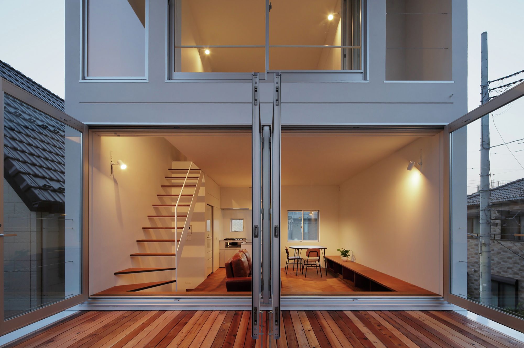 Little House Big Terrace is Located in the crowded suburbs of Tokyo, this 3-storey minimalist cube is as an approach to bring the outdoor spaces into the interior by a big terrace compared to the other spaces of the project for doing yoga under the sun, as requested by the client. Takuro Yamamoto designed the house with no windows facing the streets-which created a minimal white cube-a constant natural source of light is delivered to the different parts of the house through the open-air patio. The terrace is designed so that the clients do their outdoor activities on it.