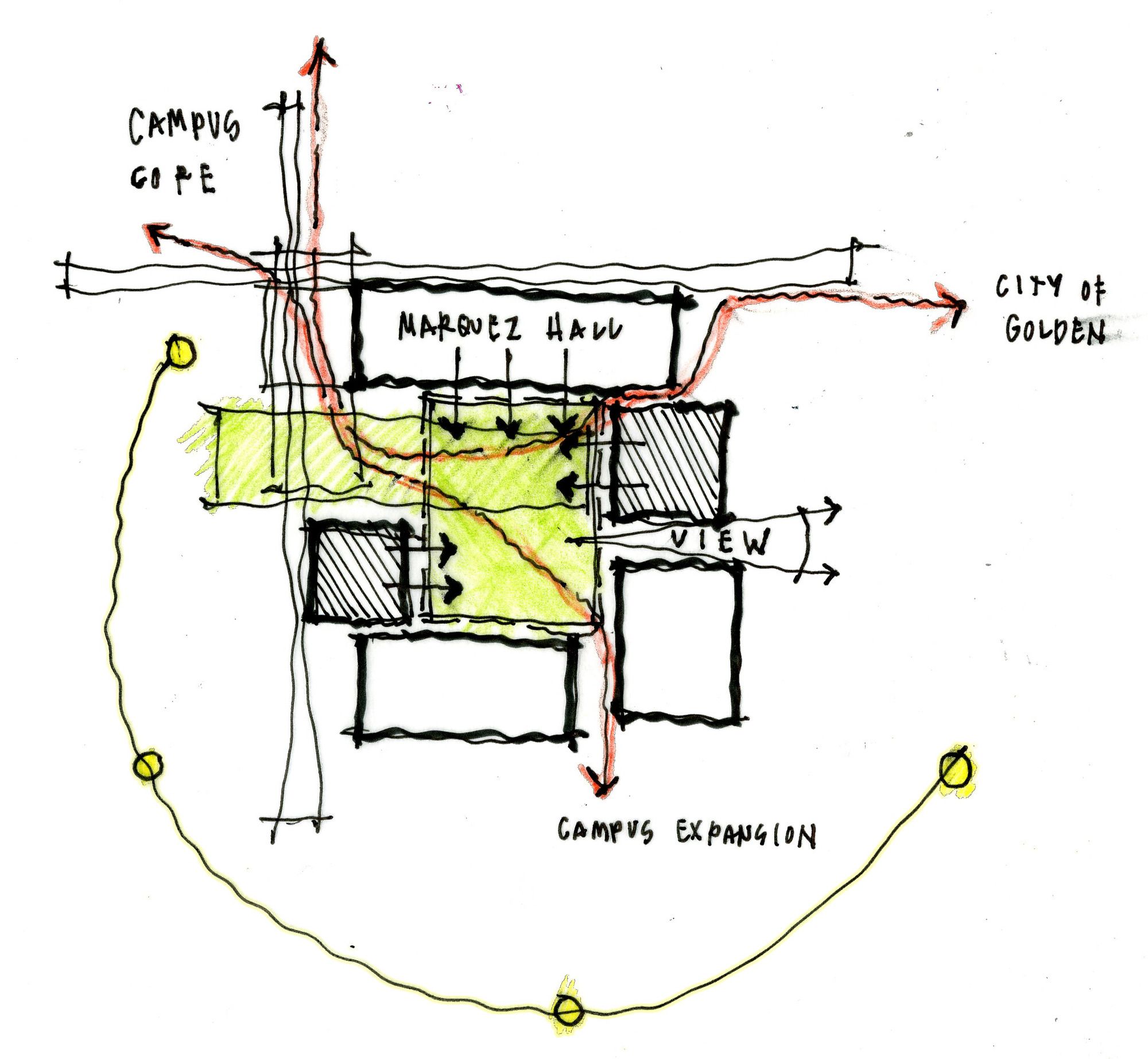 Marquez Hall is a facility for the Petroleum Engineering Department at the Colorado School of Mines designed to reflect the changing role of energy from petroleum to renewables. The growing needs of the prominent engineering program and gateway to a new Earth Science Quad are accommodated.