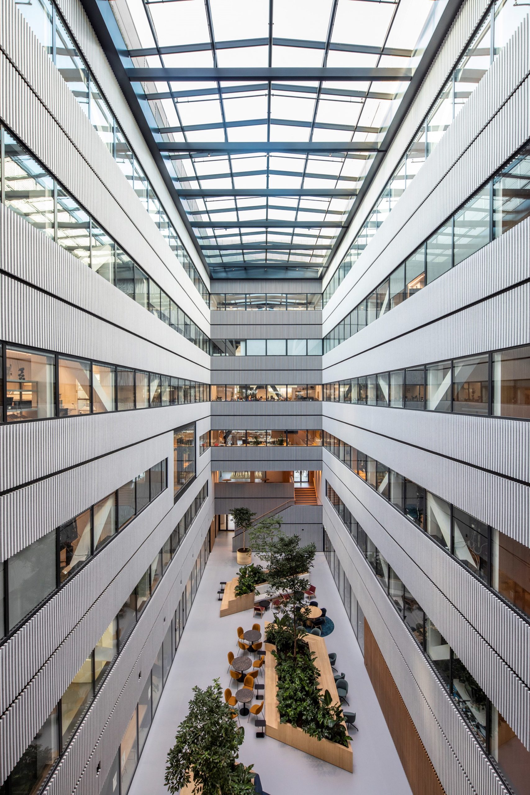 For more than 120,000 different parts, the Madaster platform maintains a detailed material passport system that reveals essential information about their use, production, and CO2 storage. Therefore, more than 90% of the building’s materials are recyclable.
