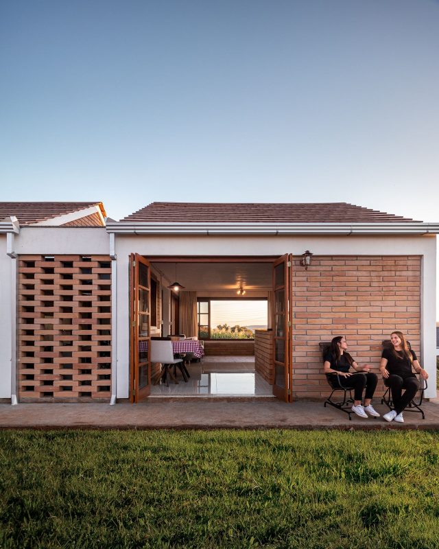 To close the patios, guaranteeing privacy, but also ventilation, we created a cobogó – traditional element of Brazilian architecture – with the gres brick itself, taking off the two volumes: social area and intimate area. The house will be expanded in the future and its extensions have already been designed, preventing what was built from being broken and ensuring the thermal comfort of the extensions.