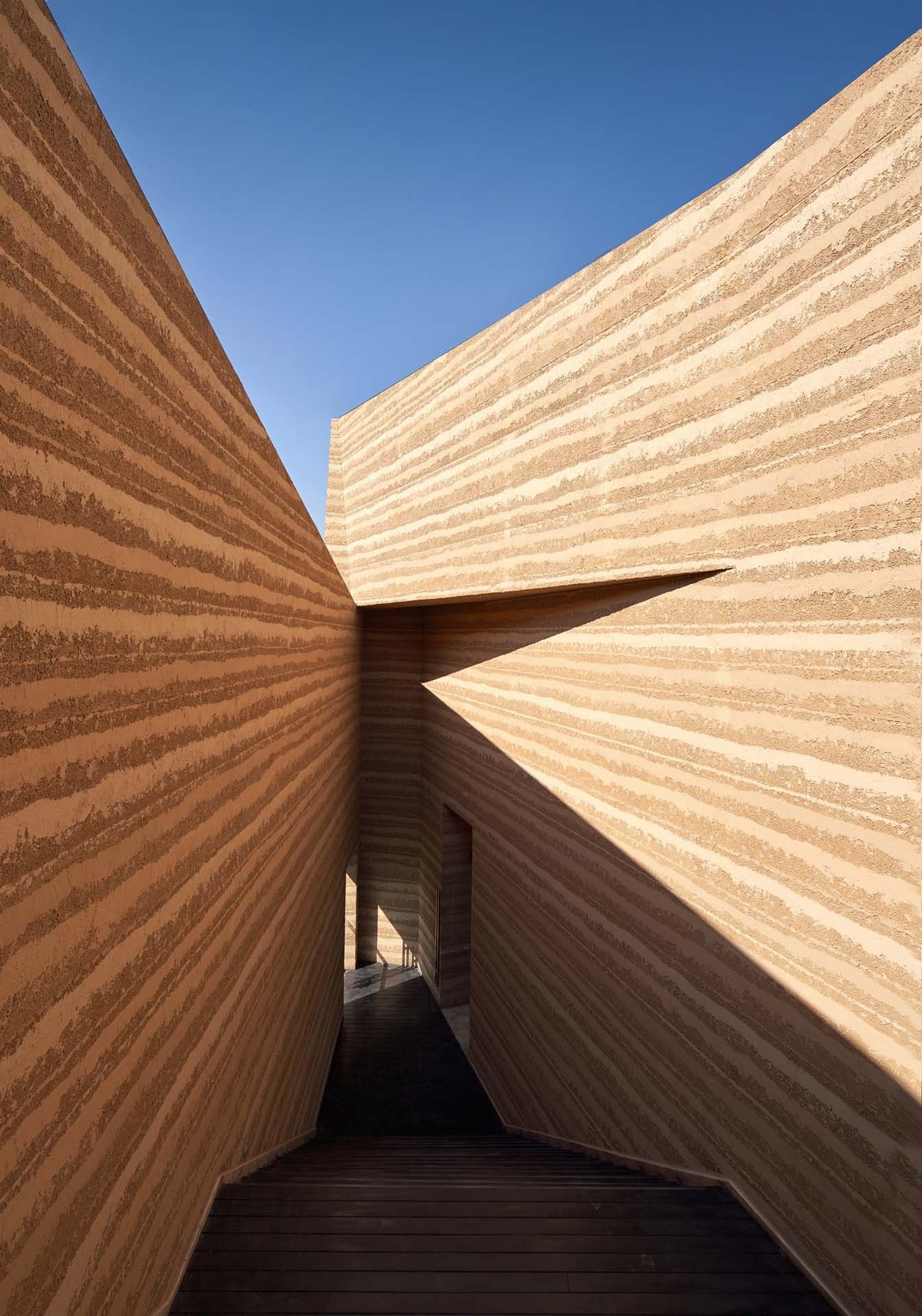 Engaging the Senses- The deconstructed “Mobius band” serves as a connecting thread that weaves together the exhibition’s flow, the viewing experience, and the exploration of curiosity. This design choice serves as a deeper reflection and interpretation of the site, offering a unique and immersive experience. The Art Museum materials incorporate the distinctive visual characteristics of local rammed earth and Yunnan’s red clay. As visitors move through the space, a captivating interplay of light and shadow animates a dynamic dialogue between people and the surrounding scenery.