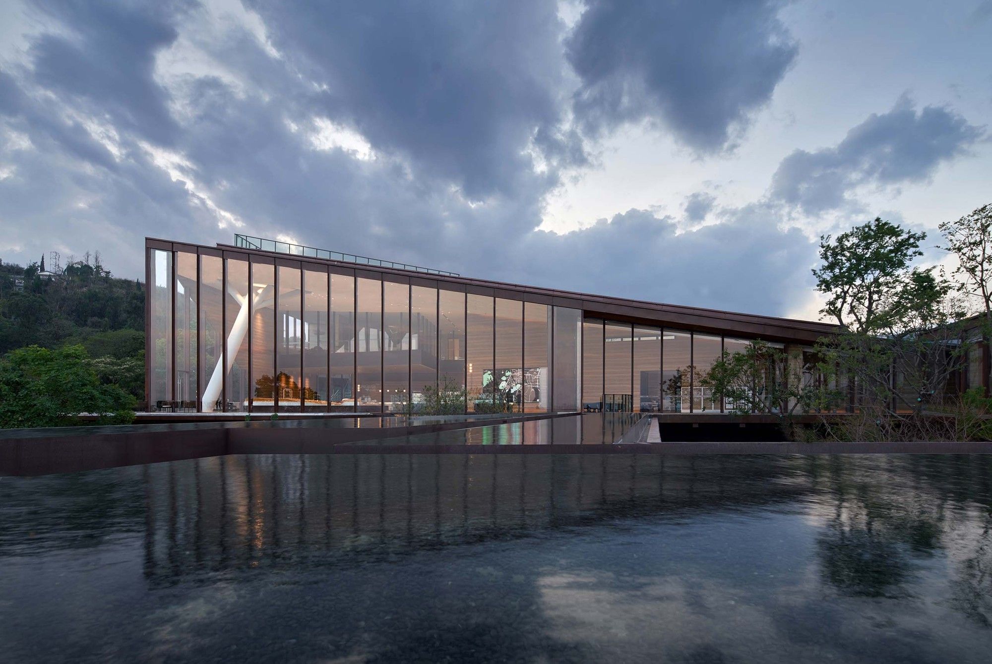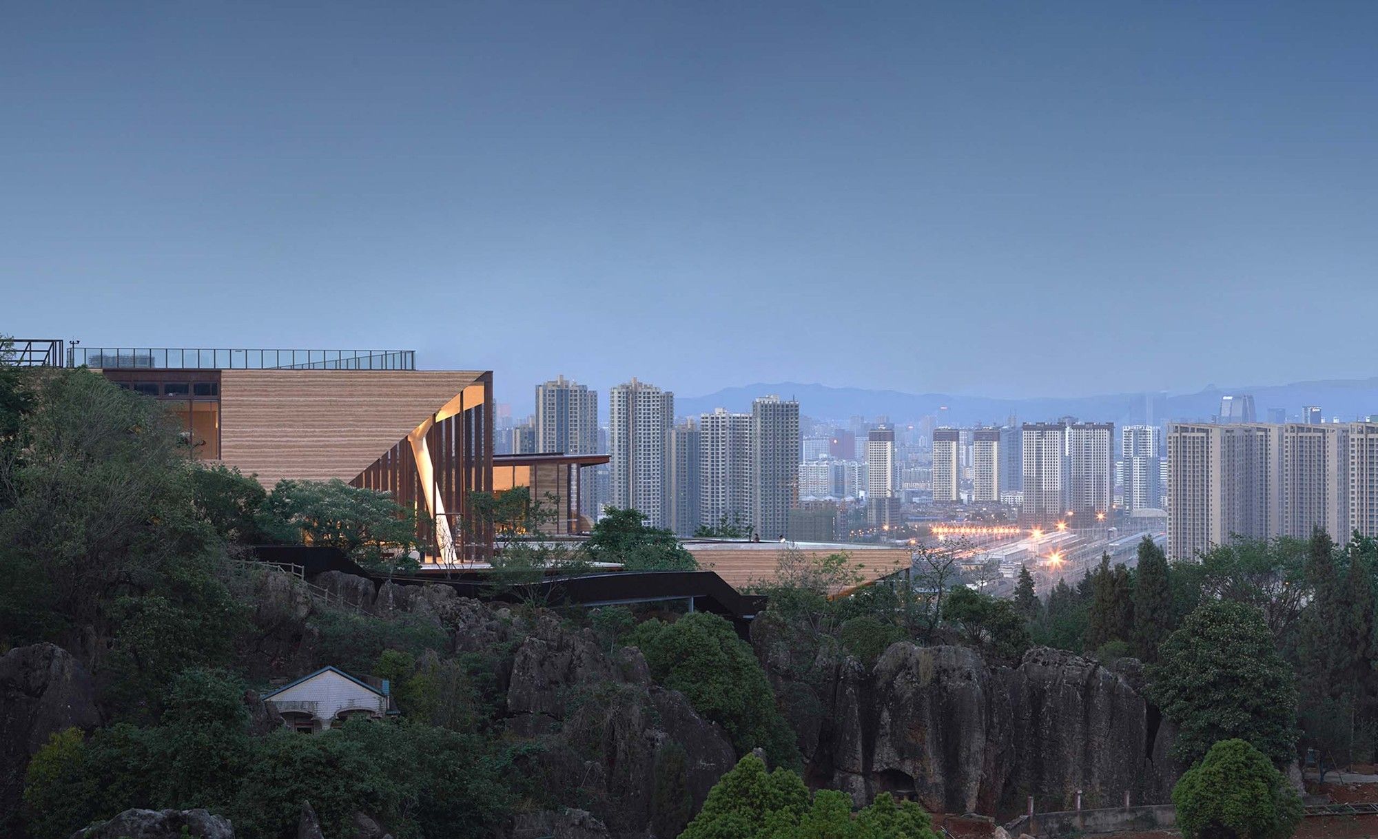 Located in the western part of Kunming City, this art museum plays a pivotal role in the Cuifeng Ecological Park. The concept of “Mountain & Sea” stems from its strategic positioning, offering a tranquil escape from the city’s commotion while standing prominently on the mountainside. Additionally, it resides at the northern terminus of the Dianchi Lake system, encompassing remarkable natural scenery that seamlessly blends the city, water, and mountains into one breathtaking vista. These distinct site features lend a unique character to this art space.