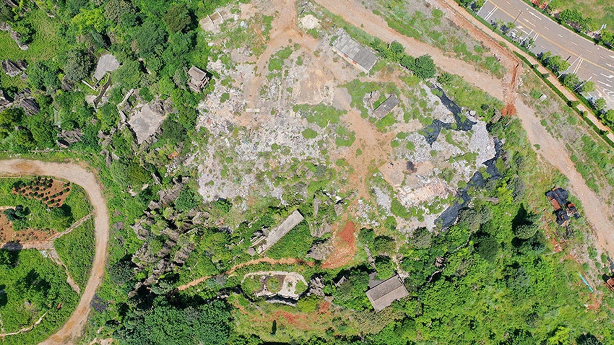 Harnessing the Landscape- The site is located roughly a 15-minute drive from the mountain’s base. As you ascend, you’ll encounter a meandering stone forest, and the mountain is divided into upper and lower plateaus, separated by a height difference of over ten meters, creating an appearance of steepness and poetic allure. While exploring this terrain, you may come across various structures, such as platforms, tea houses, viewing pavilions, verandas, and playing pools, thoughtfully erected by previous scholars and arranged from the base to the pinnacle of the stone forest.