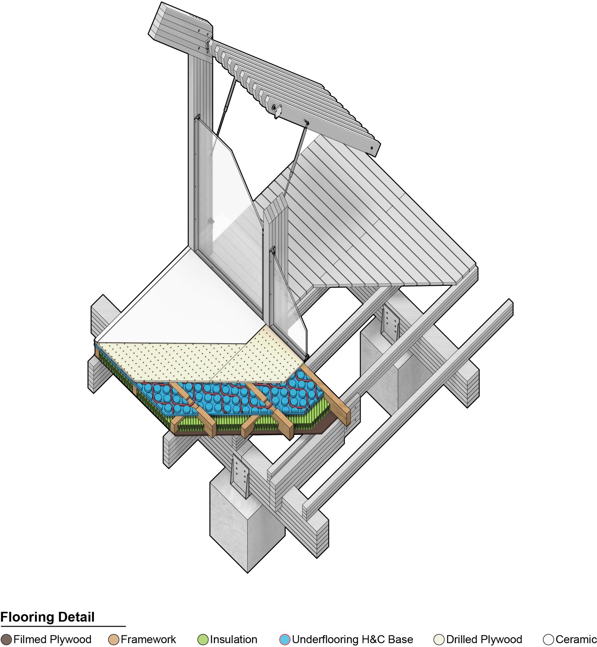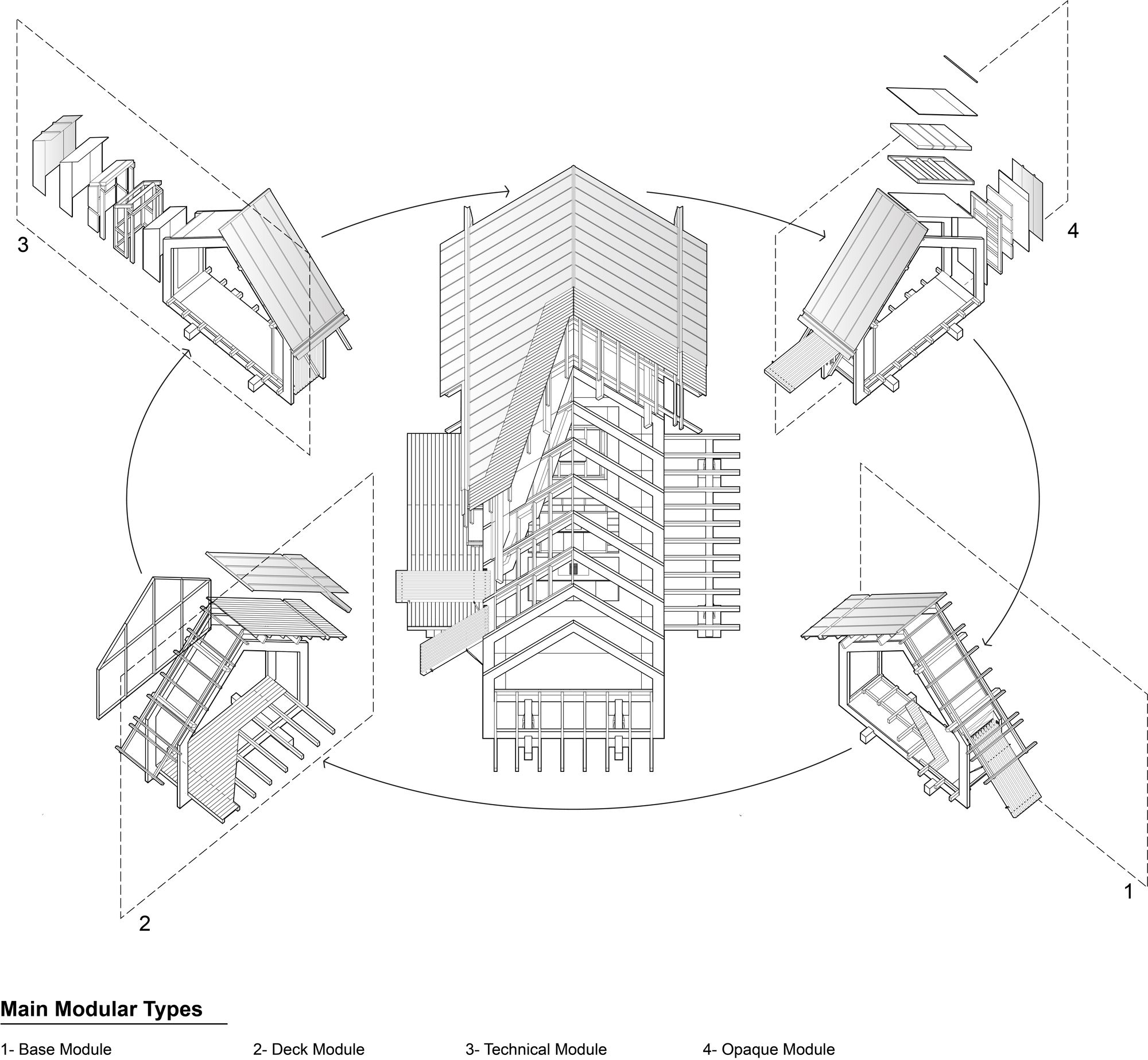 As a basic principle, regardless of MU50 House use or choice of the site, the modular system elements are designed to be constructed in reusable and recyclable materials that are easily available and can be assembled by local builders on any specific site.