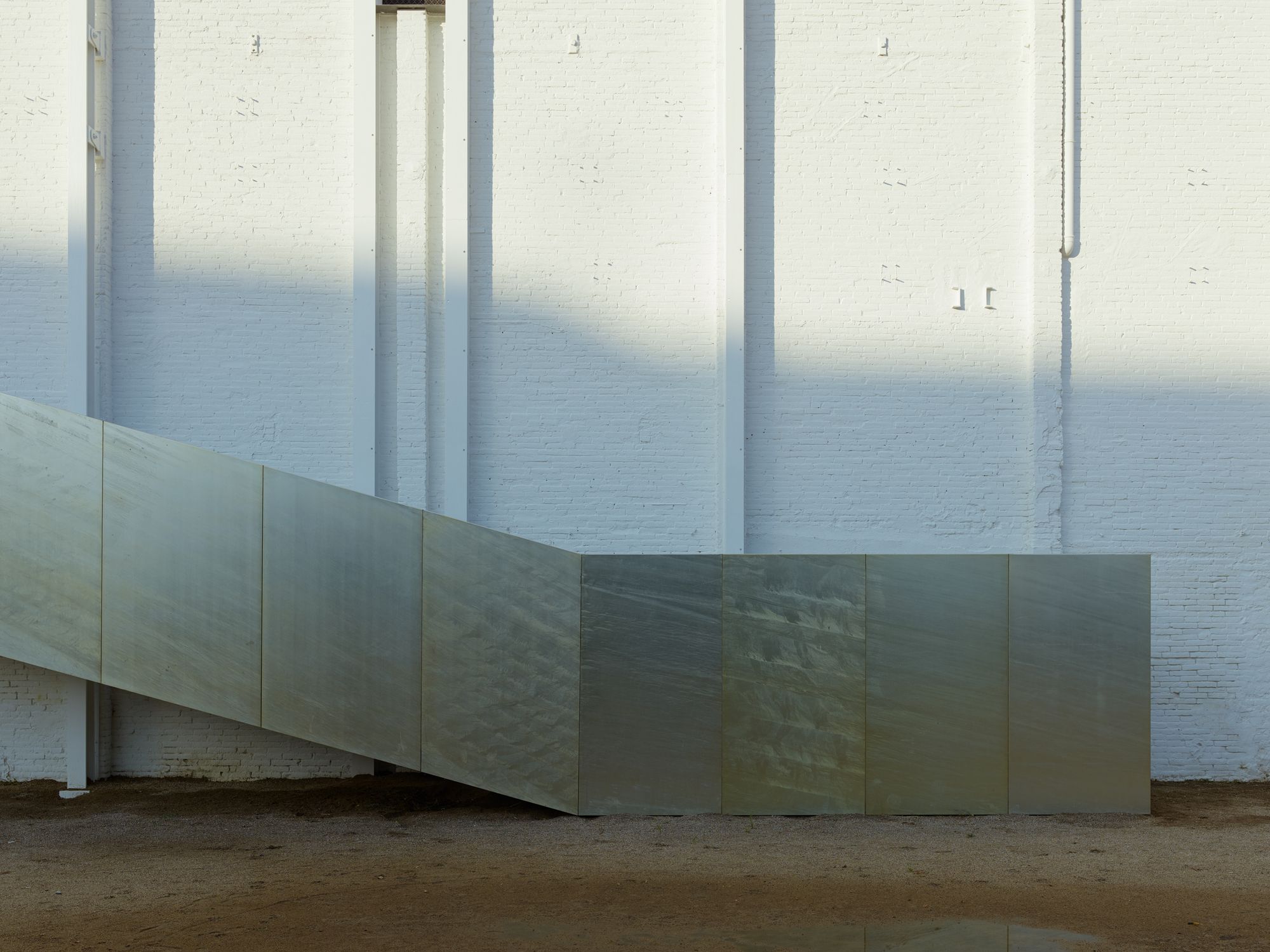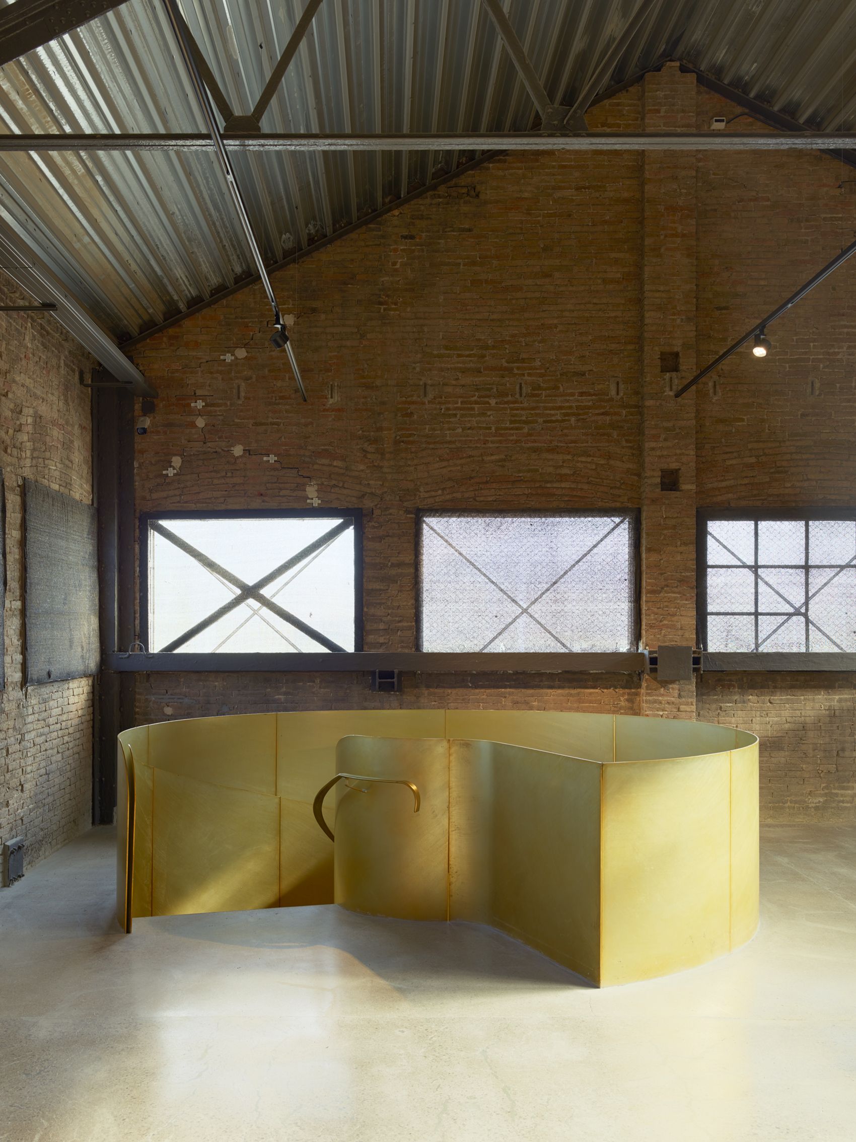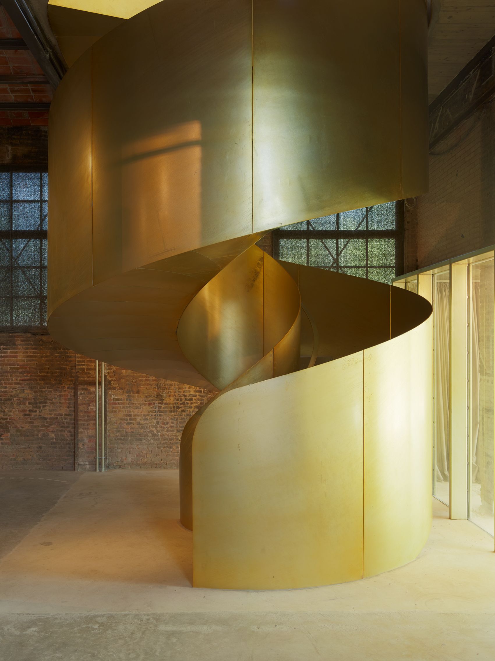 Others, on the other hand, are manifested in that singular golden galvanized iron steel that builds the staircase, the elevator and the porch, with the firm will to be a character in that industrial background, while nevertheless belonging to it.