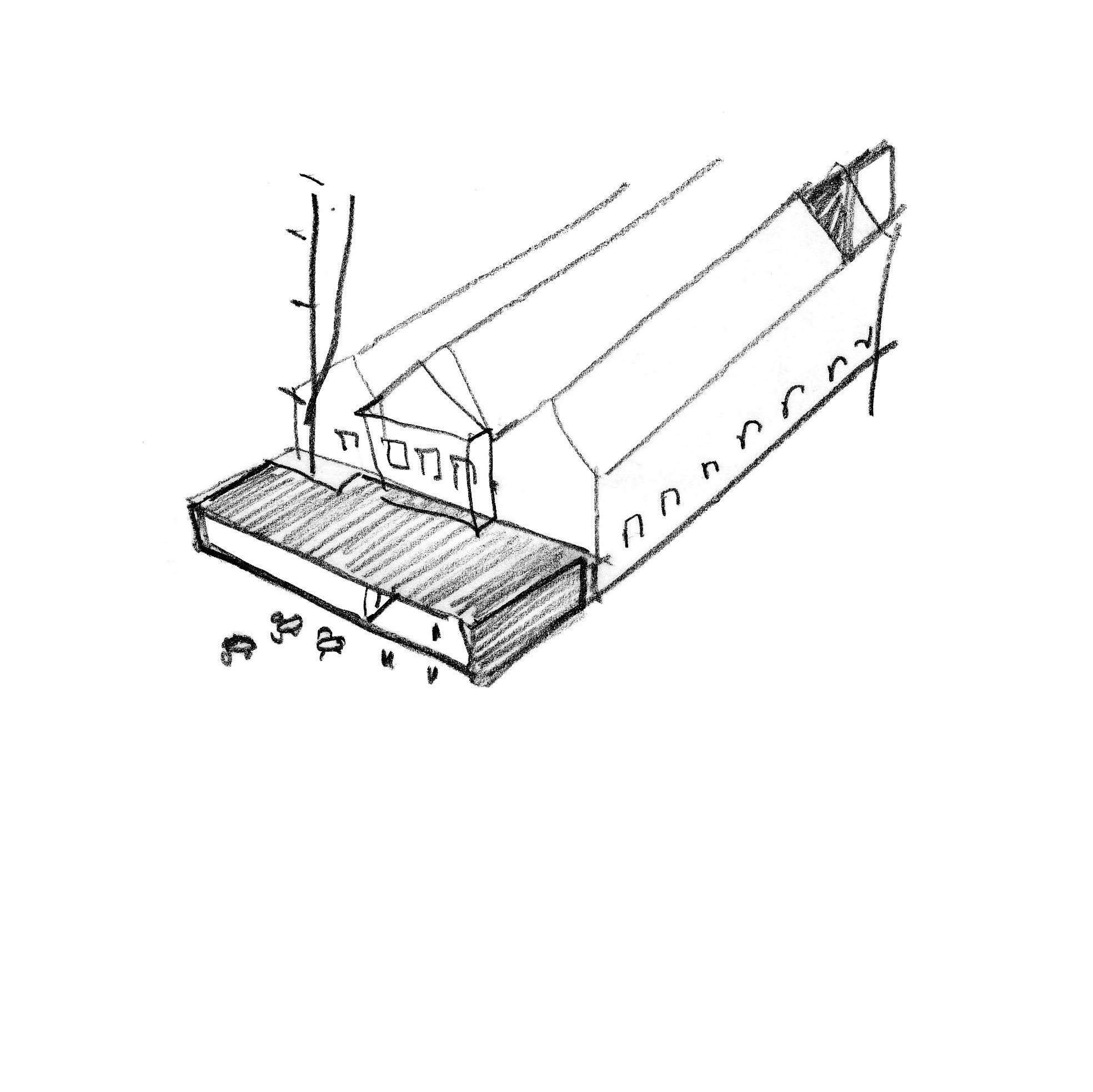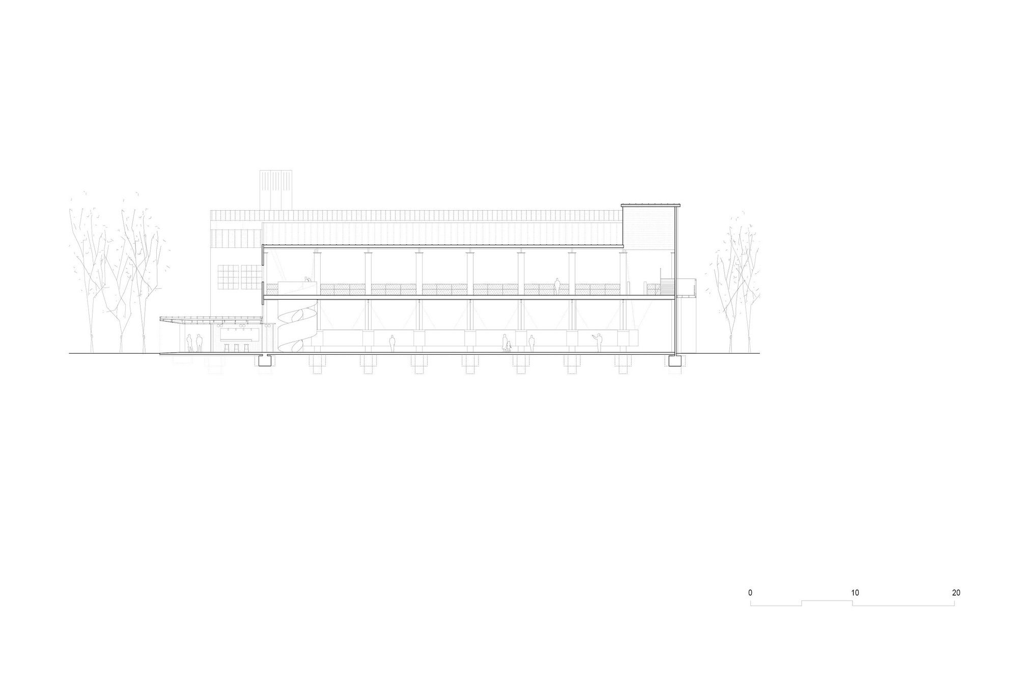 A new porch, which runs along the entire length of the main façade, is added to the heritage building with a strategy similar to how other pieces were previously attached and allows an open relationship between the museum and the park in which it is located.