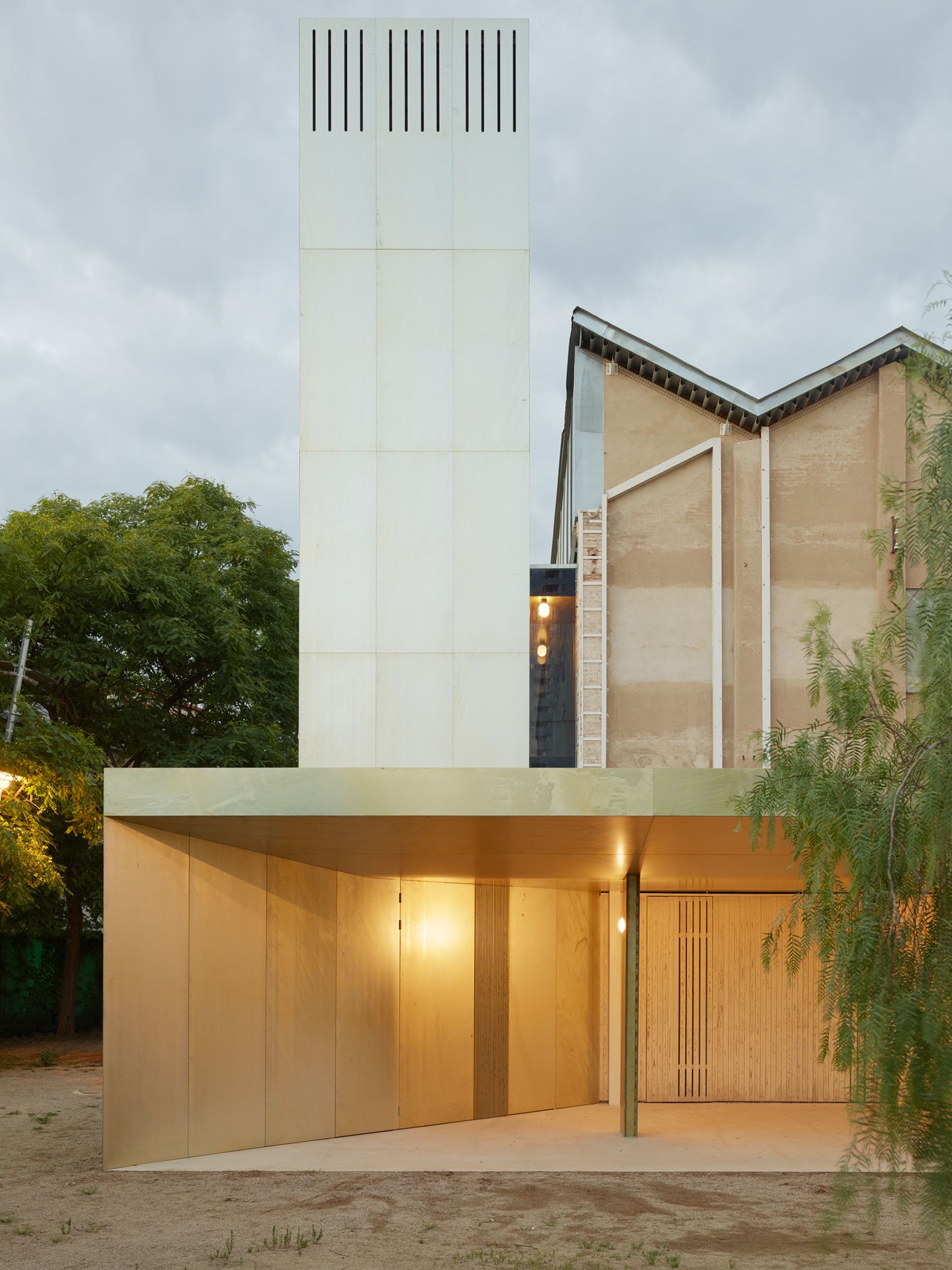 The original project was born from a competition called in 2009, proposing to preserve the building’s very particular character, and especially the richness of its interior space since the exterior had always been surrounded by annexe buildings. The project is based on the addition of the minimum pieces necessary for its operation, constructed in a single golden material that adds a new layer to the whole.