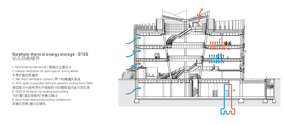 The driver for the design has been to create a park, then a building and then an interior design, which stands out as one connected design focussed on creating a great environment for people celebrating the daylight. Light House is one of the first of ZERO CARBON buildings to be done in mainland China, hence it will host state of the art technology to achieve an energy consumption below 25 KwH/m2/year and the remaining energy load will be offset by Photo Voltaic panels.