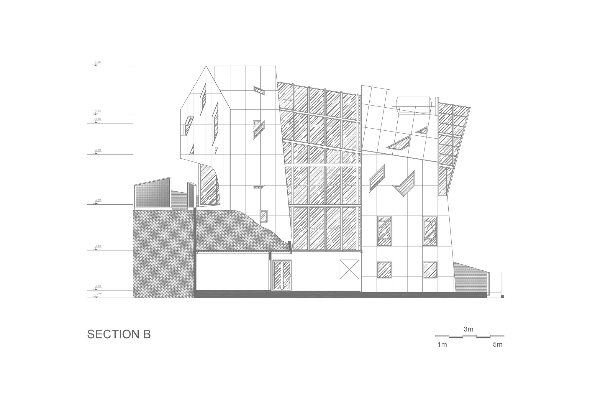 Notwithstanding, inheriting a modern architectural style, its façade has been entirely covered with a white painted steel layer as well as being CNC machined with its separately-design motifs.