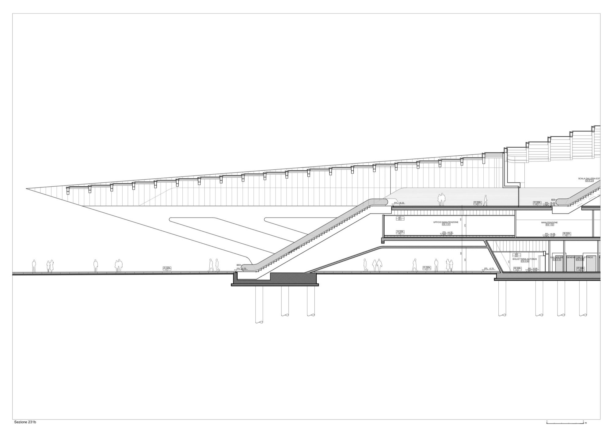 It is the bridge above the tracks, where as the key challenge of the architectural scheme is to create a well organized transport interchange that can simultaneously serve as a new landmark to announce the approach to Naples – thus a new gateway to the city.