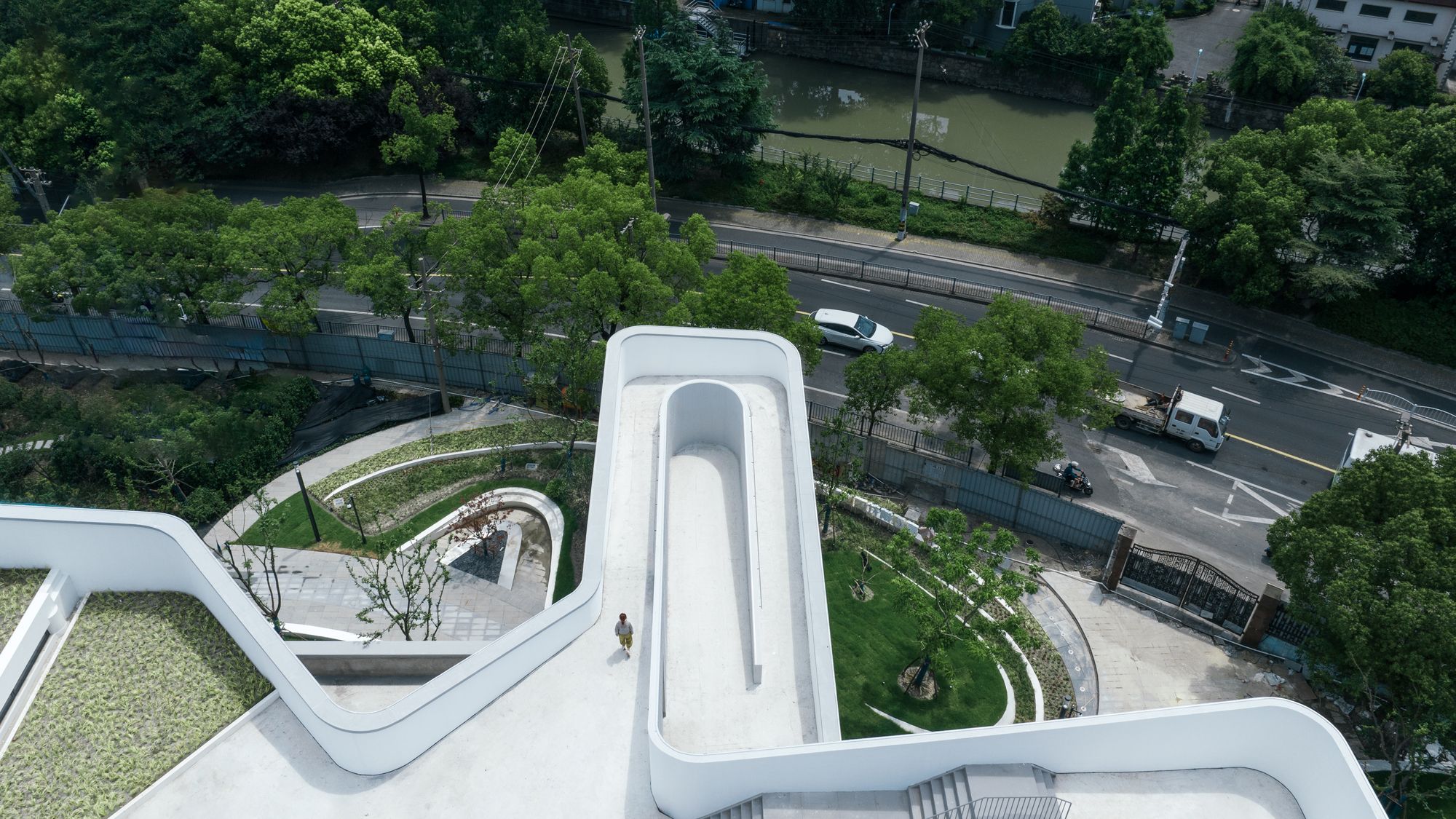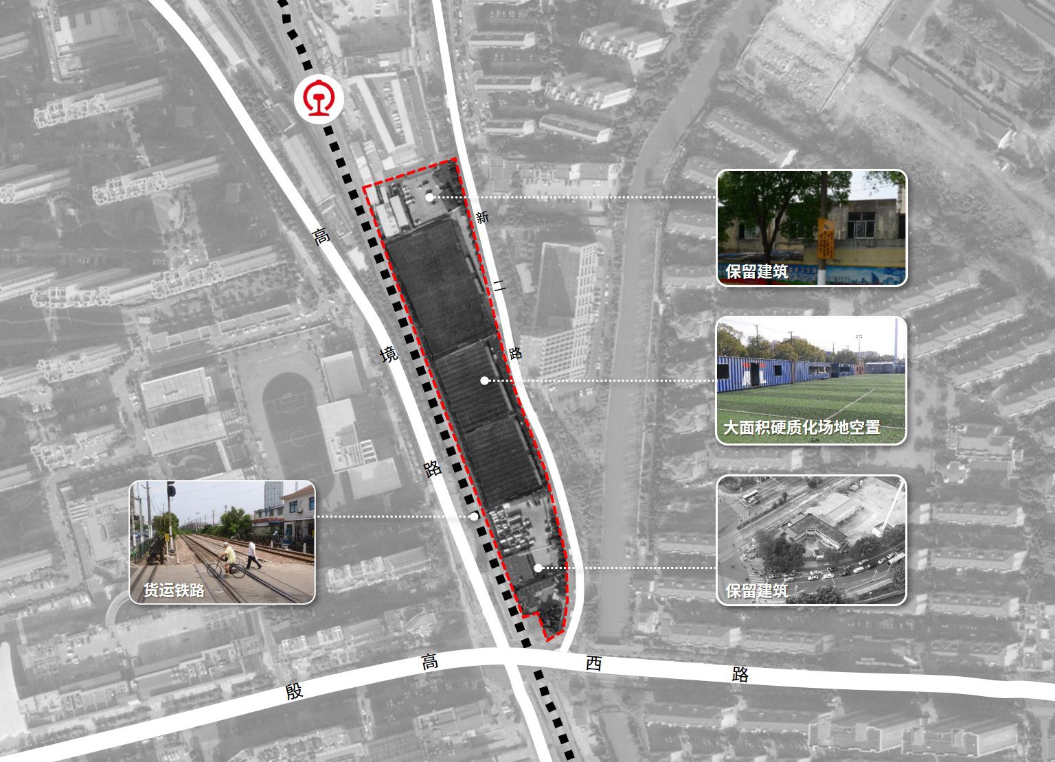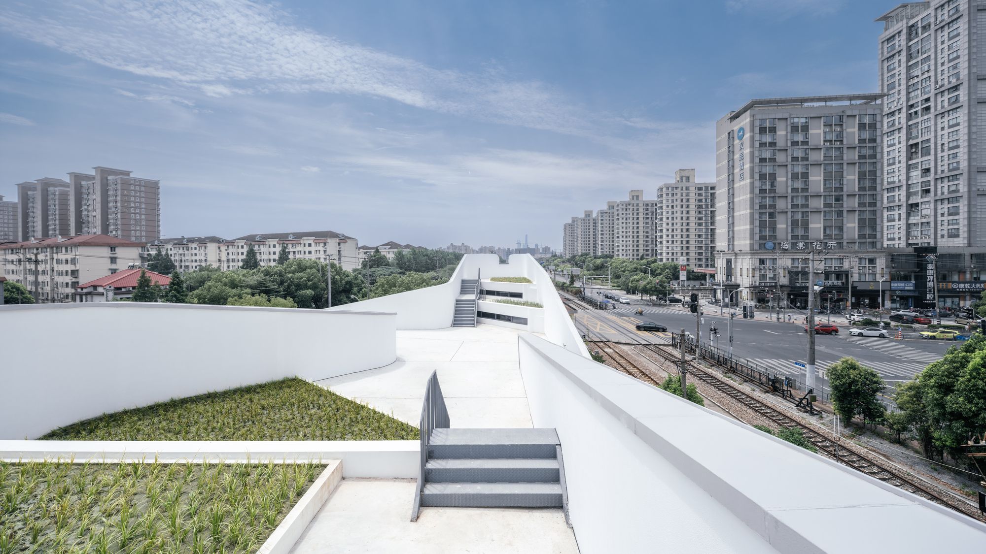The Horizon High Land Park & Civic Center is a historic structure undergoing rehabilitation. The project is situated near the Beiyang Railway Branch Line, a railroad that passes through Shanghai’s downtown, in Gaojing Town, Baoshan District, Shanghai. It is built on an abandoned railroad freight station. Road traffic intersects the land, dividing it into an unutilized, forgotten area within the city.
