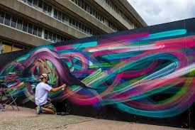 He has the ability to give a spatial quality with sparing colors creating artistic walls in the space that leaves a great impact on the people. Street art always express feelings and convey messages through visual experience. It adds meaning to the space giving it a fourth emotional dimension. The colors with the line language both add to the space.