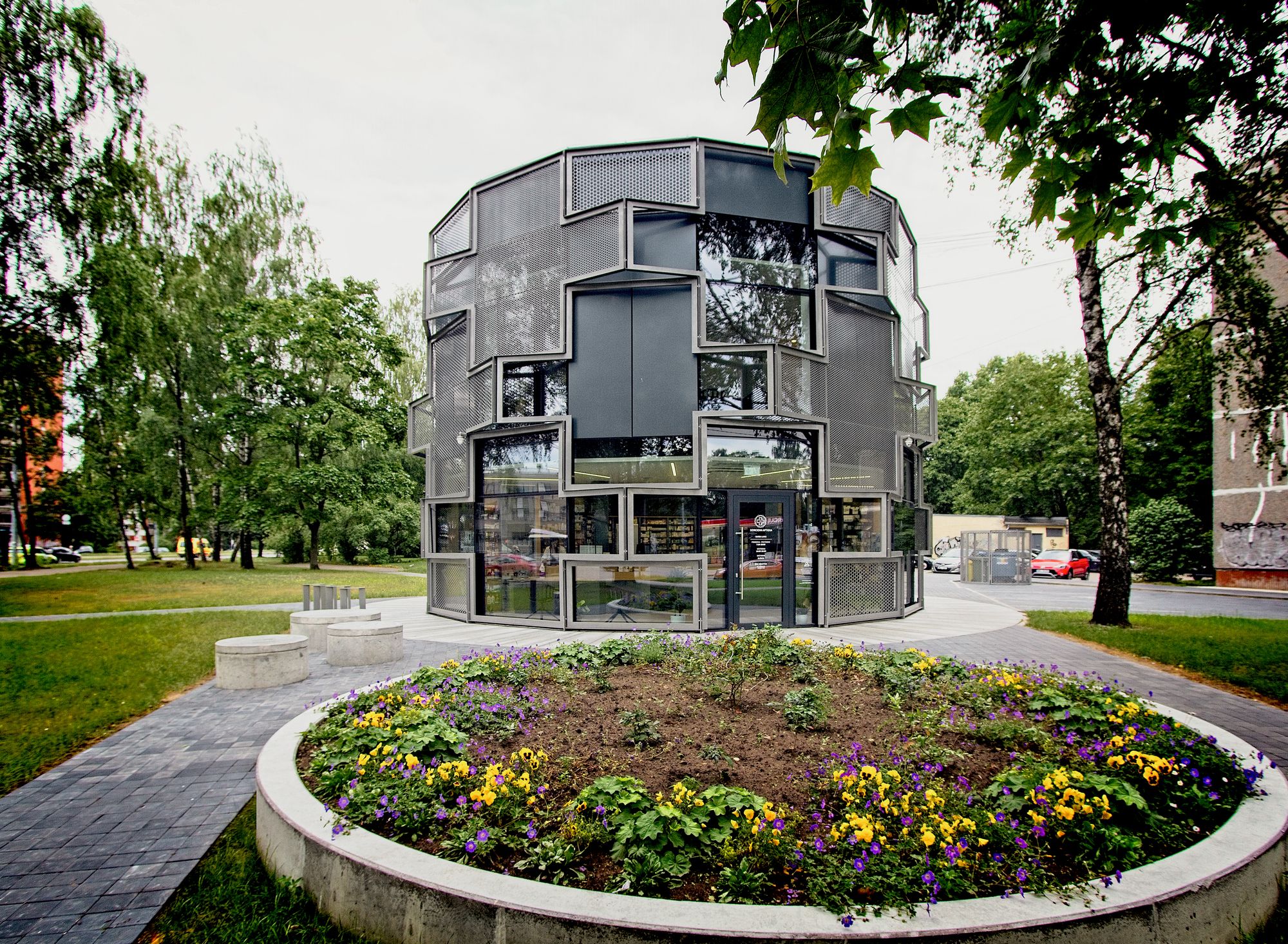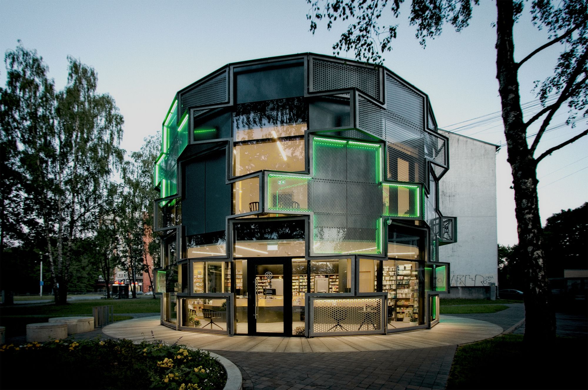 The new pharmacy on the corner of Jurmalas gatve and Dzirciema street is not just a building, but rather a peculiar hybrid between an environmental installation and a building. Its overall image is modest and conceptually assertive, but at the same time keenly different from the surrounding urban environment and attractively expressing the contents of the building.