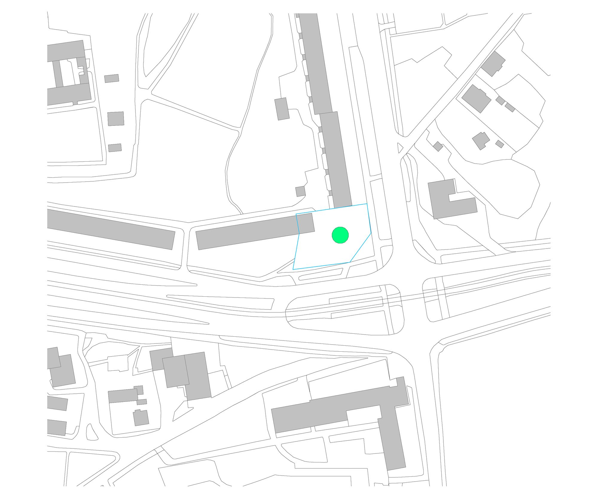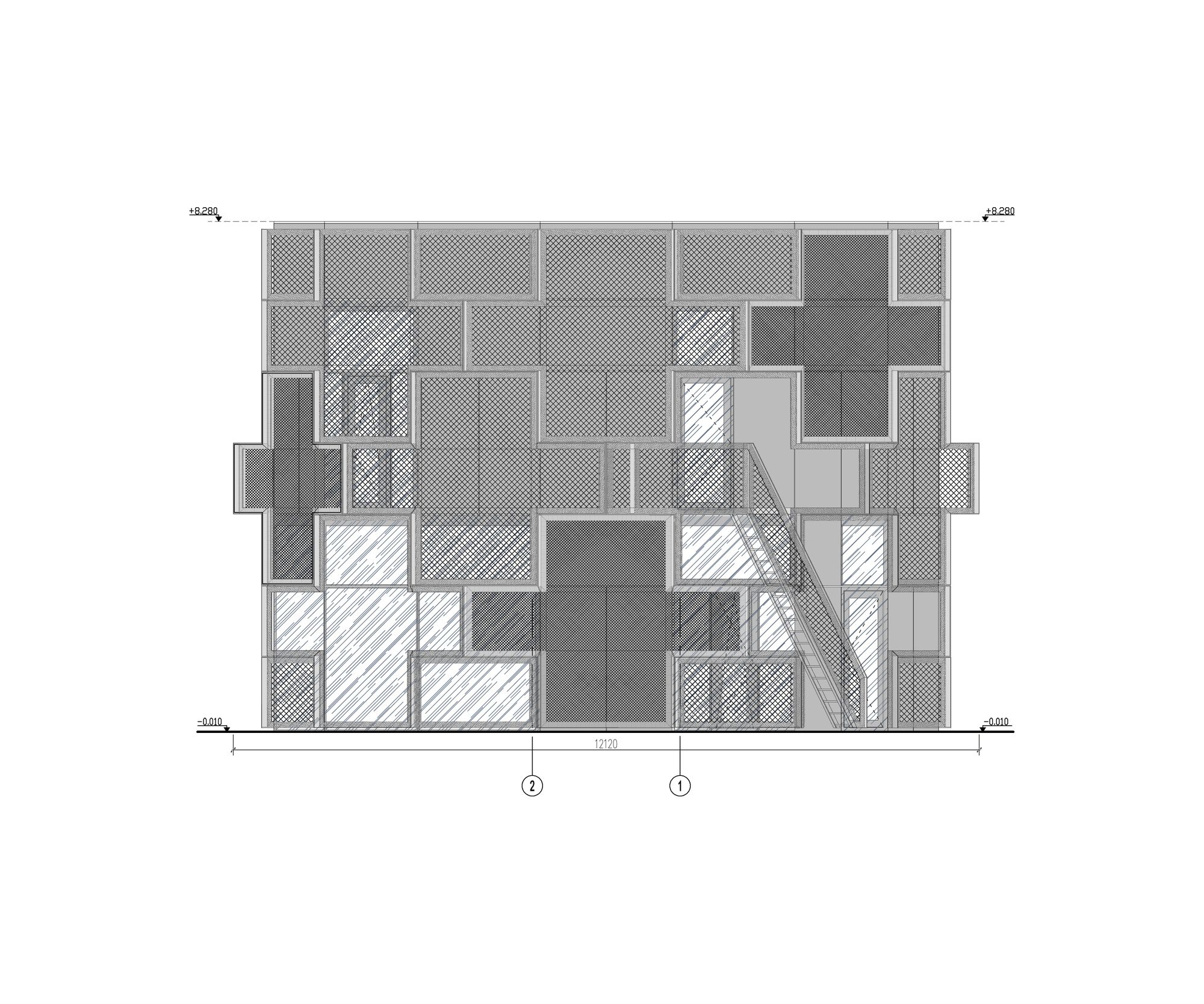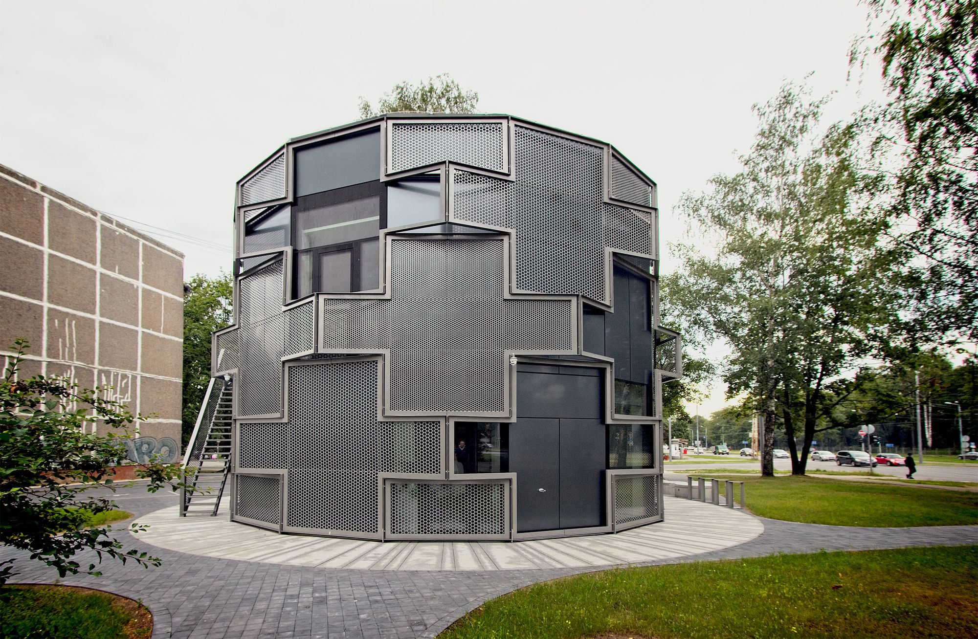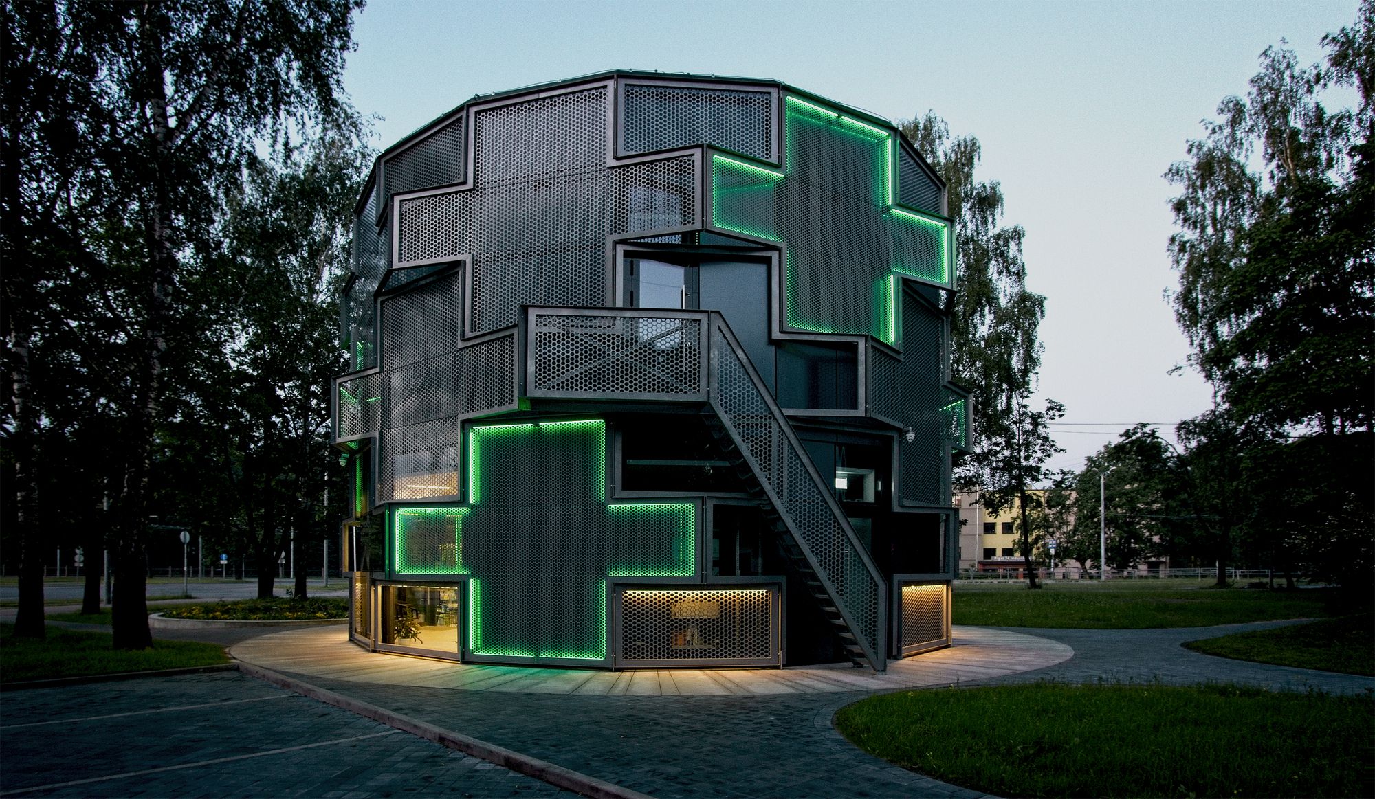 The idea of environmental installation arose not only due to the existing green square but also due to the local building authorities, who insisted that a traditional low-rise building from the urban planning view is not suitable for the corner of the block with five-storey building. In their opinion, the more visually new volume will differ from traditional buildings, the better it will fit into the existing surrounding.