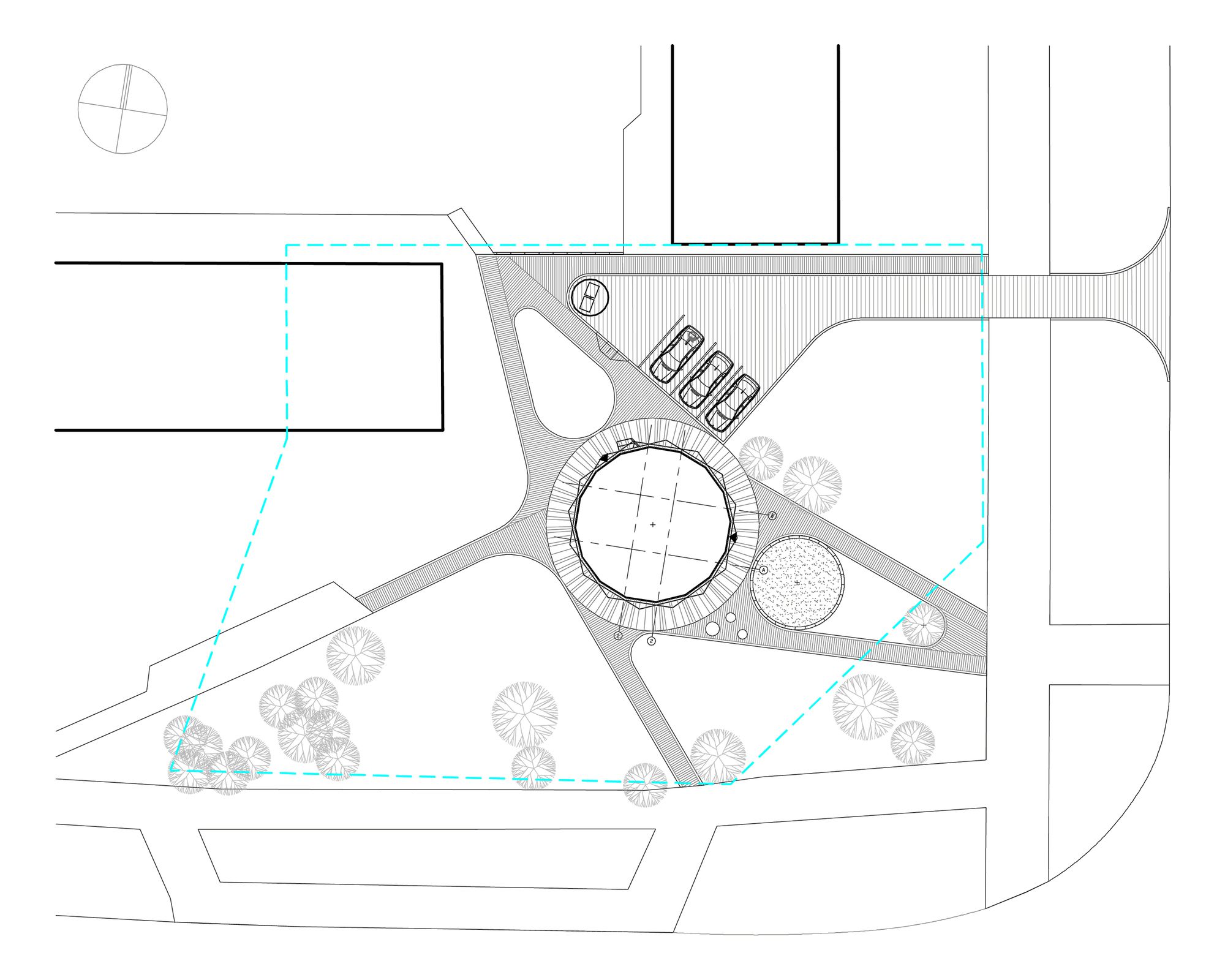 According to the location of the new pharmacy, the plot visually and functionally perceived as a small city square. The concept is based on the development of a public outdoor installation. Openwork sixteenth-corner metal construction basket two storey high is designed to be filled with the required function of the pharmacy.