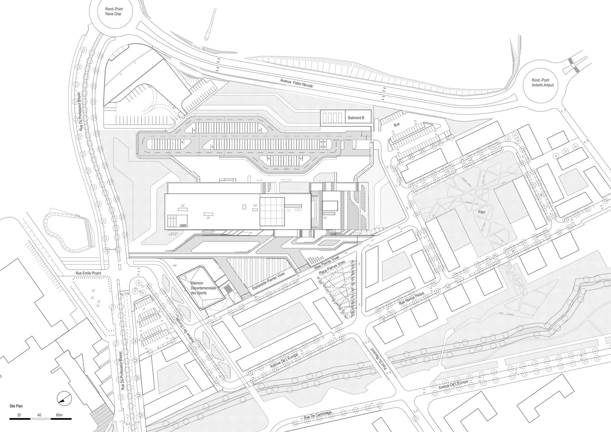 The main vehicular access road, both for public visitors as well as for staff and service vehicles, is coming off Rue Marius Petipa and provides access to either side of the building. The public access leads to the generous visitor car park right in front of the main entrance lobby. The service access is stretched along the opposite side.