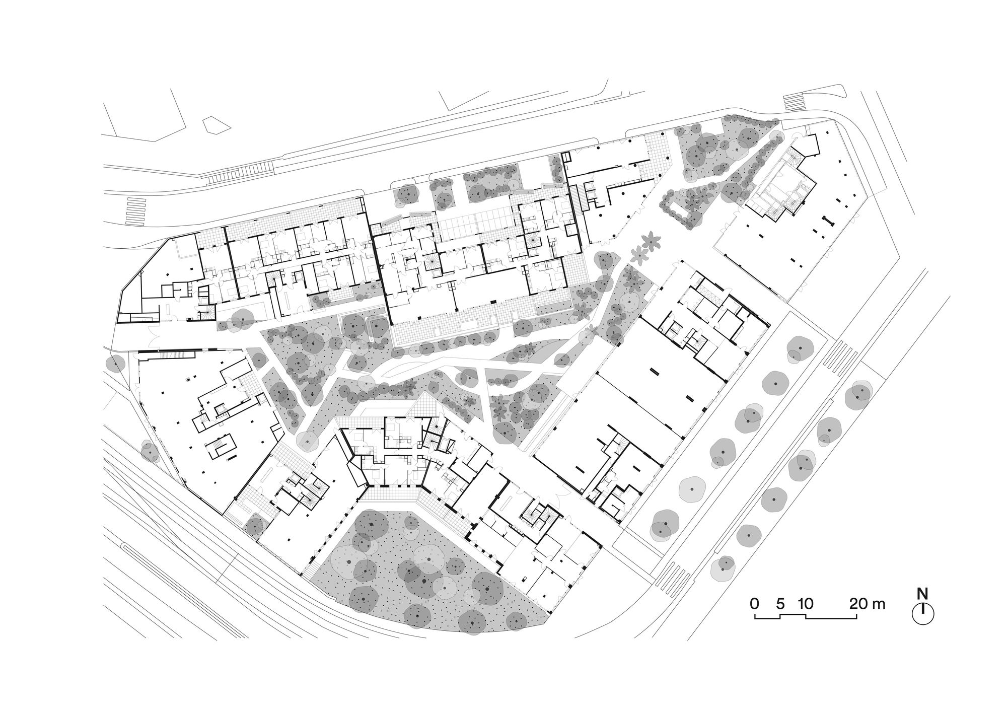 The accommodation architecture systematically gives pride of place to the external extensions of the dwellings so that residents can make the most of the advantages of the climate. A genuine outdoor room increases the habitability of each dwelling, a living space where everyone has their own tree providing shade at mealtimes.