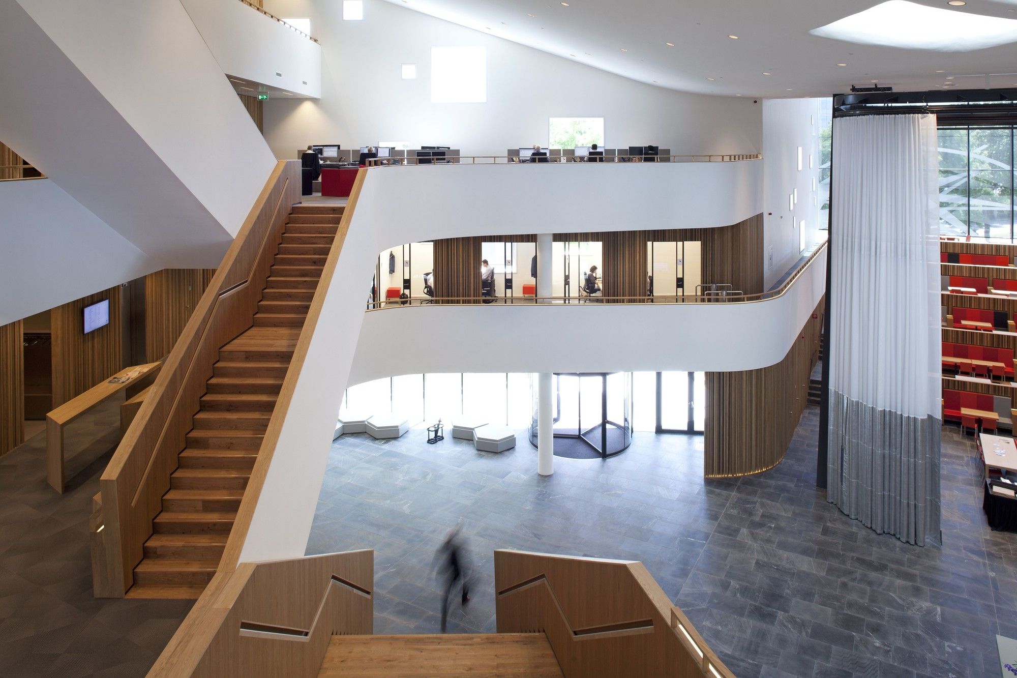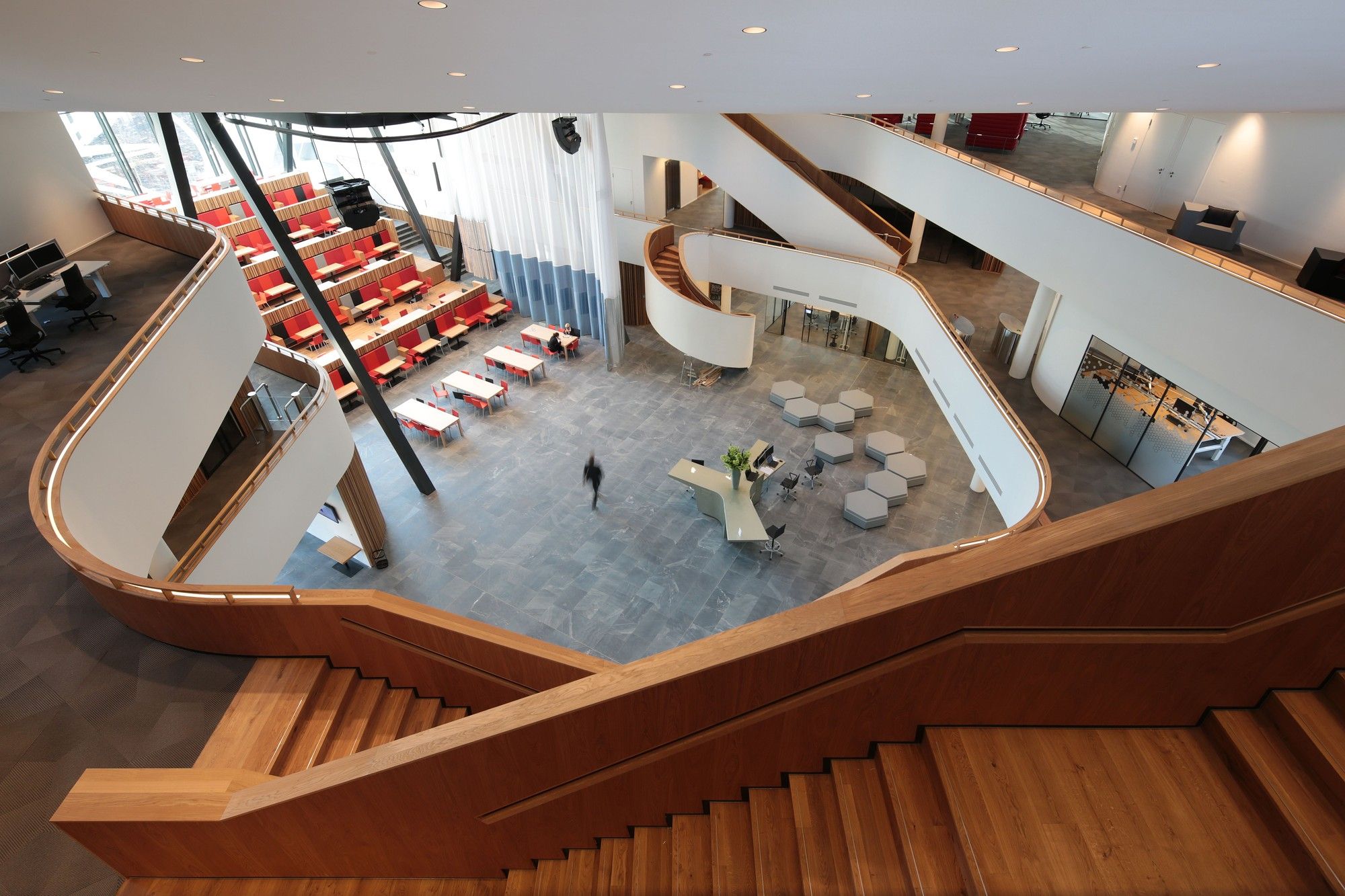 The new Advice Centre of Rabobank Westelijke Mijnstreek in Sittard accommodates 320 employees in an inspiring work environment. Historically set up as a cooperative bank, Rabobank has an open culture with a community-oriented approach. Mecanoo translated the core values of the bank into an inviting and appealing design.