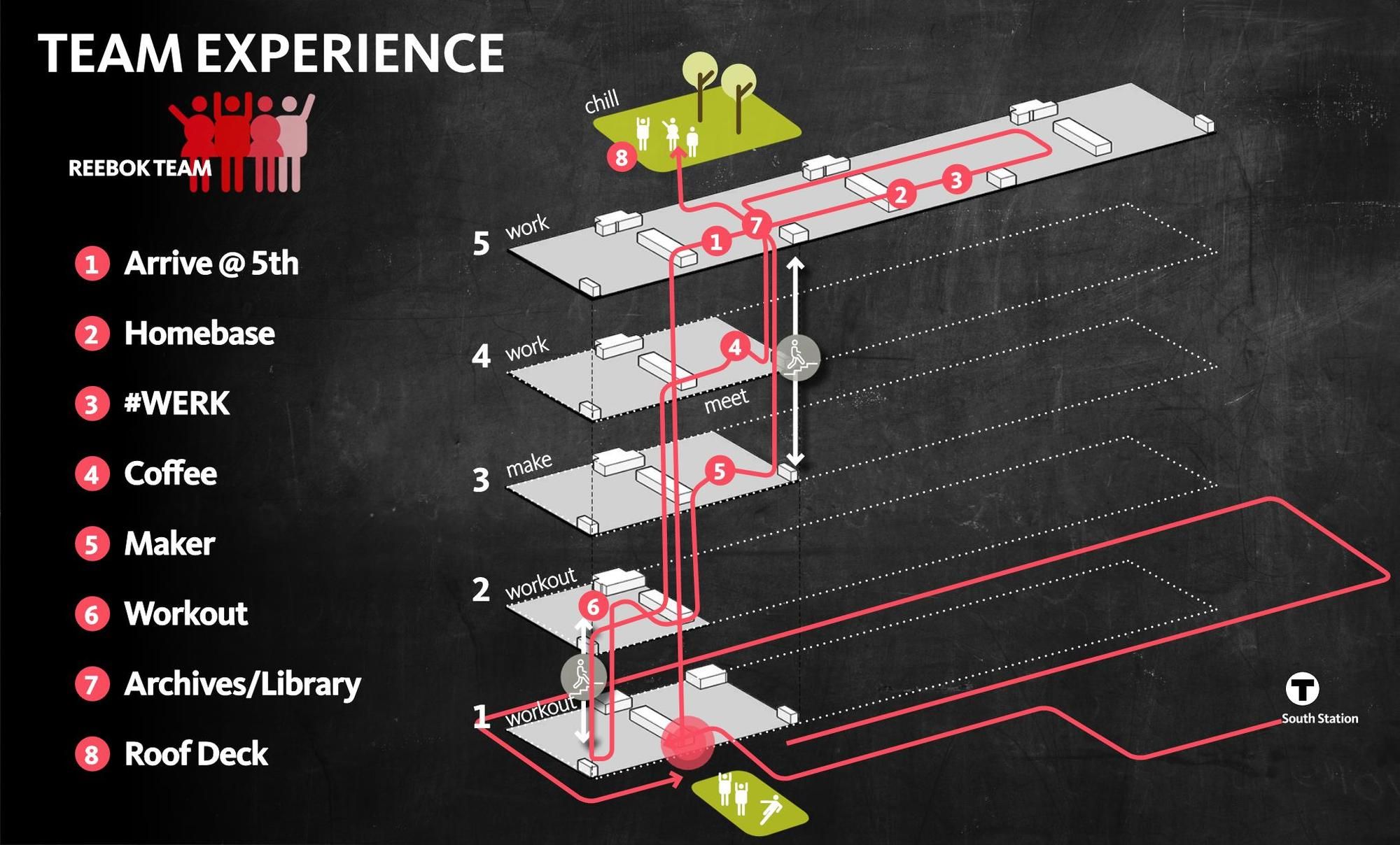 Designed by Gensler, As the demand for companies to be located in urban areas increases, Reebok sought to relocate their current headquarters from Canton, the suburbs of Massachusetts, to a prominent location in Boston’s Seaport District.