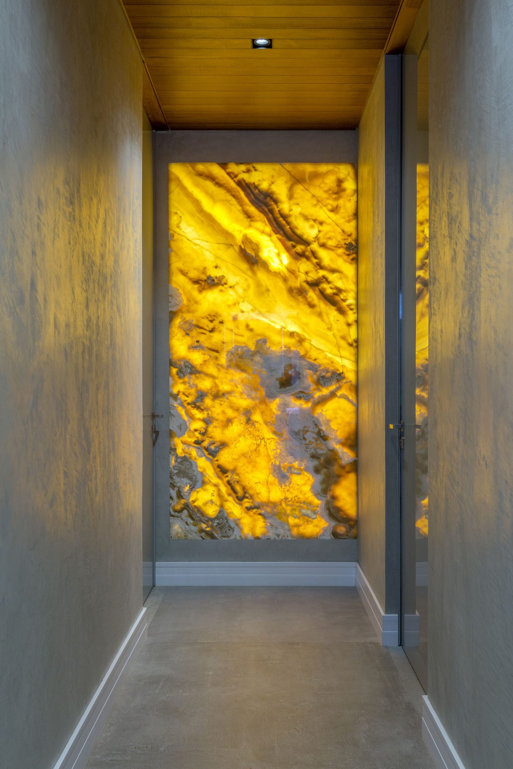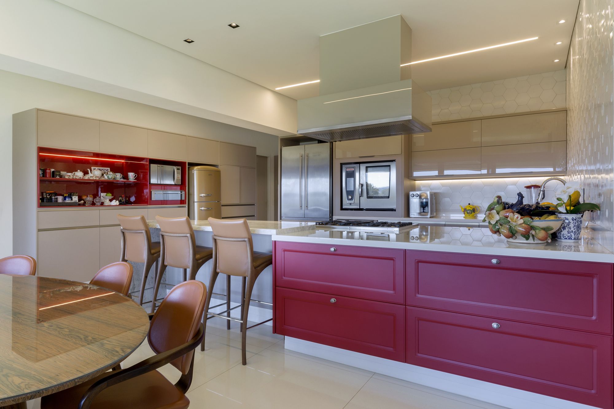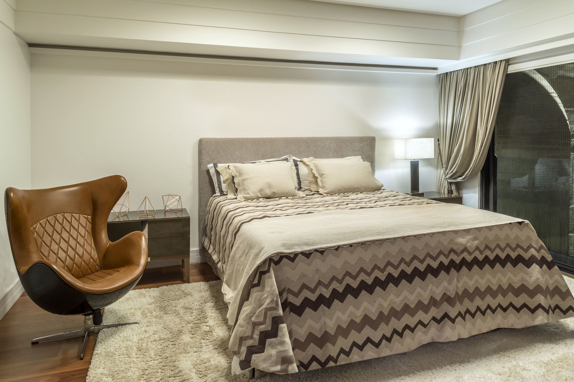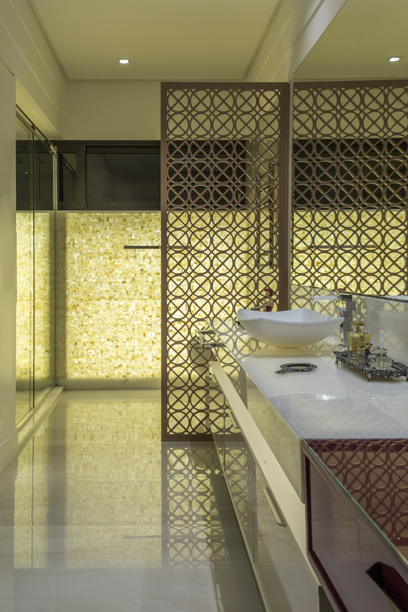 The architect also designed and led the construction of a recreation area, previously non-existent, which received a lounge with gourmet kitchen, spa, wine cellar, spacious bathrooms and an infinity pool. Sculptural rotating panels with brise-soleil functions were designed and executed to compose the space. The landscaping was 100% designed by Lutero Leme, who contemplated a 380 meter walking trail, permeated by grass, flower beds, fruit plants, pergola and gazebo.