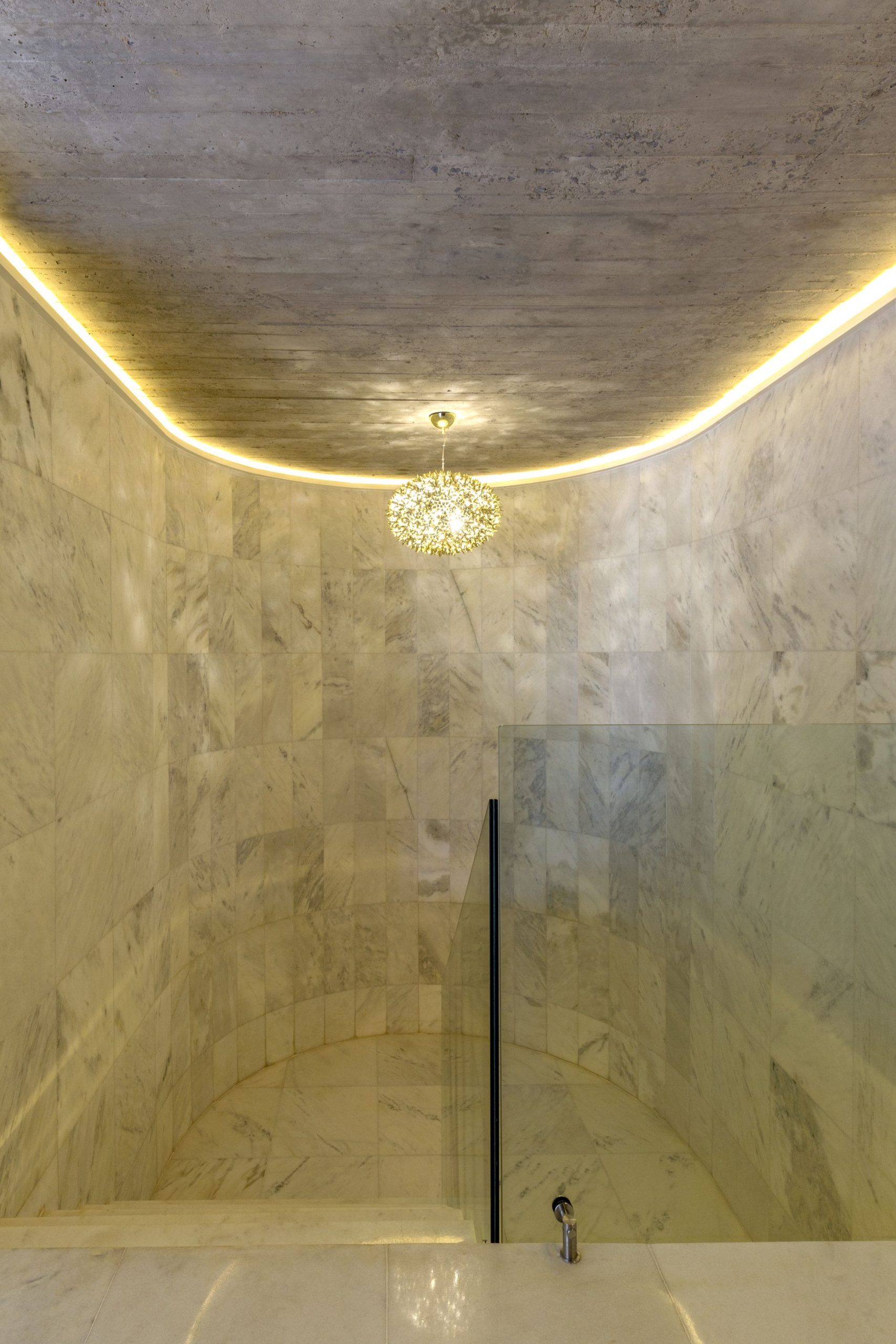 Another highlight of the project is sustainability. The entire projection of the roof was used to install solar panels (photovoltaics, for heating water for domestic use, swimming pool and spa). Two underground tanks (40,000 liters total) were also built to store rainwater and all gray water after being treated for garden irrigation, and a 6 m³ composting system. To further reduce the environmental impact, four charging modules for electric vehicles were installed.