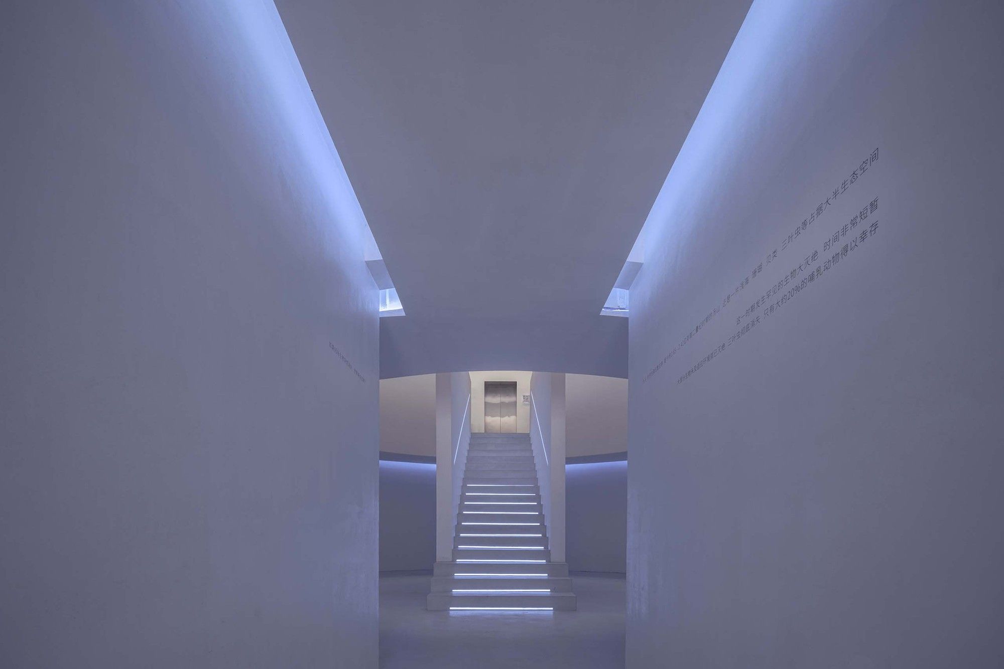 The east-west axis of main entrance starts from the front square, and goes through the downslope into the cavernous circular hall so that people feel back to the mysterious genesis of Tangshan ape men. Along the light from the front hall, the lobby is open and clear, and the sight line is back to the east again. The east-west axis of main entrance and the north-south axis are cross at the rotunda. The rotunda is located at the core position of the entire architectural space, with the functions of design library and the Lava Lab lifestyle shop. The axis continues to move westward. The exhibition hall is at the end of the first floor. The design library, Lava Lab lifestyle shop and exhibition hall are arranged at the core area of the space, which define the property of the design hotel with architecture as the core in this project. As going up the circular outdoor stairs from one side of the lobby, three indoor and outdoor public places including the roof garden, multi-functional sharing space and infinite swimming pool spread along the axis from east to west. The axis passes through the swimming pool and integrates into the mountains to form the first disappearance of architecture in nature.