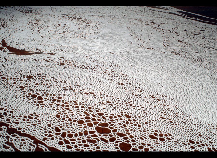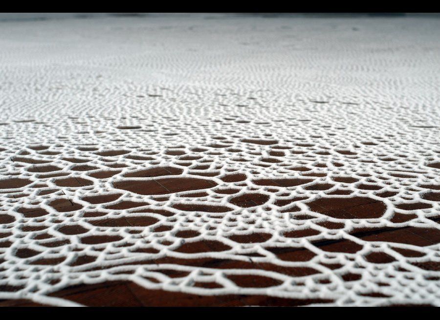 Artists enjoy using different mediums for their work. Motoi Yamamoto is a talented artist who composes his works amazingly with salt. 11 working days of great precision and tremendous patience result in the ‘floating garden,” that can be seen at Loyola Marymount University.