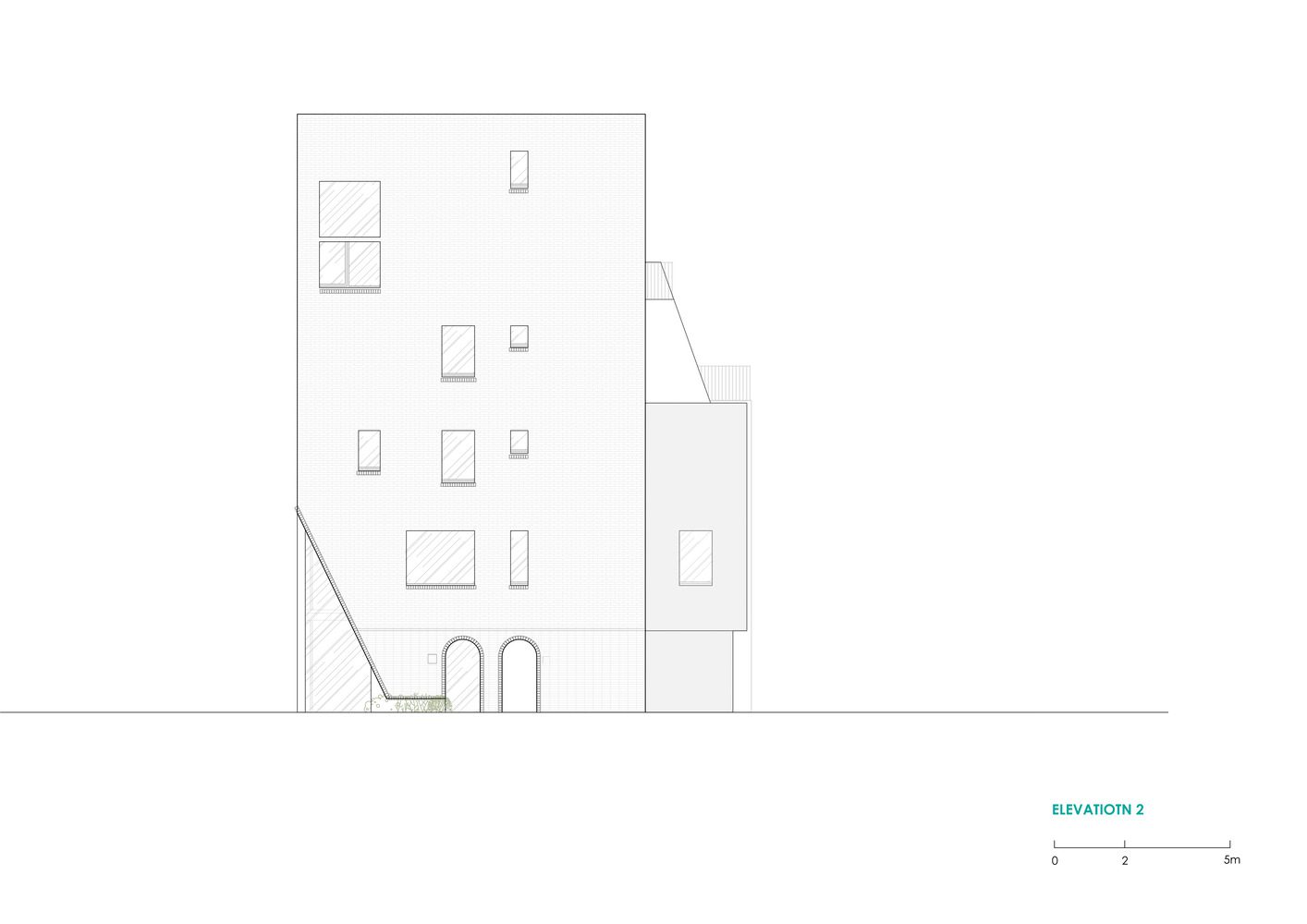 The sense of massing created by connecting the two buildings on the divided site to look like a single block fits in with its surroundings while proposing a new density and scale for the future building. At the most important corner of the site, a triangular façade was created to create an impression of the building, making the interior look extraordinary from the outside and bringing vitality to the city.