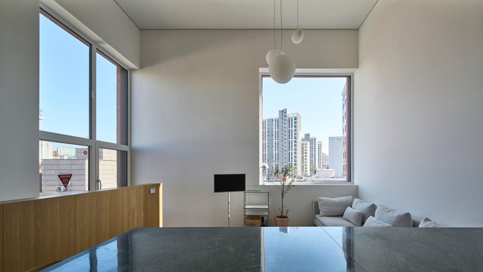 The site bordered by 16m and 4m roads is L-shaped, and the corner of the site is important. The shape of Samseon-dong is inevitably L-shaped depending on the site, but when viewed together with the existing building on the left side of the site, the design was based on the fact that it can be completed as a square. Although the scale of the buildings is different, the same material, red brick, was used, and the design was conscious of the lines and proportions of the elevation so that the two buildings could be read as a single block.