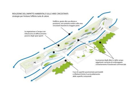 The two main functions of this mixed-use project are residential and shopping. The apartment buildings work as a buffer to the existing residential area, while the main 3D structure of the ‘square’ holds shopping and leisure facilities. The shopping area is an attractive urban mall which offers an alternative to the problematic suburban shopping centers – which tend to look like concrete boxes and are placed in unfortunate places. The horizontal layout of the project ends with a hotel, as a tall urban landmark, overlooking the urban squares and pedestrian boulevard, as well as the city skyline and sea coast. Cucinella’s 240.000 sqm project was designed according to the scale of the urban fabric, following sustainable principles. The intervention aims to return the public space to its citizen. The process of urban regeneration is complex and tackles sensitive social and economical problems of the local community. With the attractive public areas and functions this project offers, the investors hope to revitalize the neighborhood of San Berillo and to create a place where people feel safe and respected.
