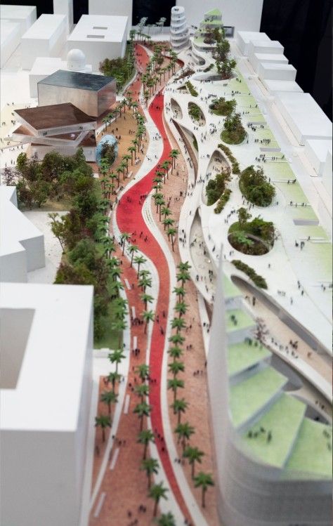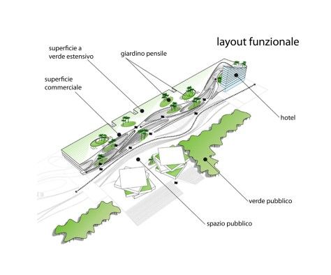 The neighbourhood of San Berillo in Catania, Sicilly has always had a negative reputation. An ample demolition took place here in 1958, after brothels were banned, leaving 30.000 people displaced or homeless – an action linked to Vatican’s Societá Generale Immobiliare. The problems amplified and continue to exist this day. The public administration wishes to solve the urban degeneration of this area of Catania by implementing architect Mario Cucinella‘s 2012 rehabilitation master plan proposal. The main aim of this project is to connect the city center to the Ionian Sea coast, with the help of a large pedestrian boulevard. The urban void was redefined by tracing a new east-west axis and connecting the street grid. All of the existing fabric, functions and transport routes were taken into consideration – for example, taking the underground metro line as a design articulation. The architectural concept is based on a tectonic geometry realized with four intertwining plates accessible by ramps or stairs, pierced with interior green courtyards, which form loggias and terraces. The result is a 3D urban square inspired the gardens of Babylon.