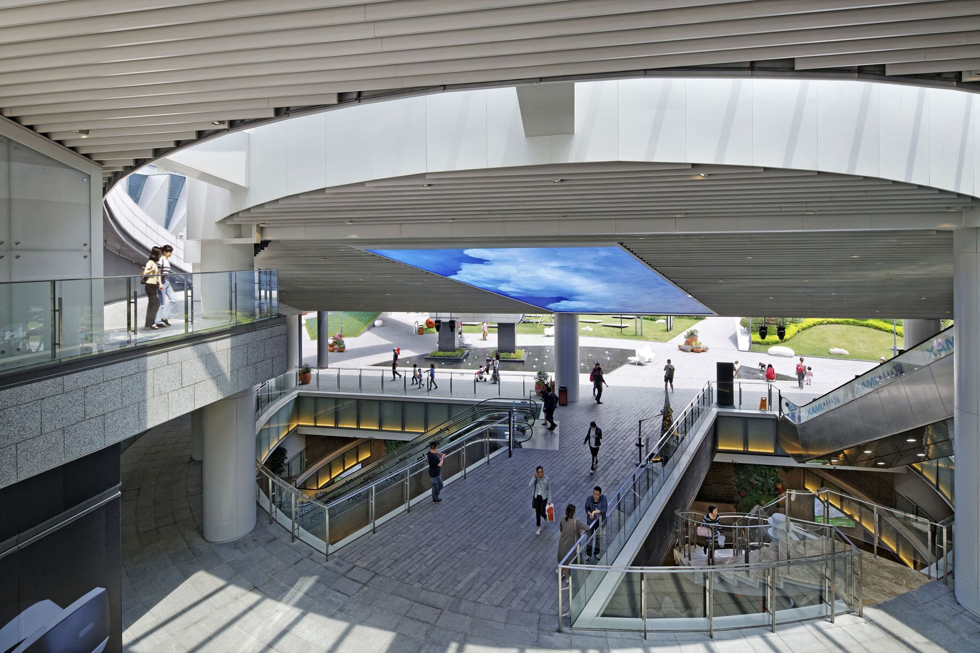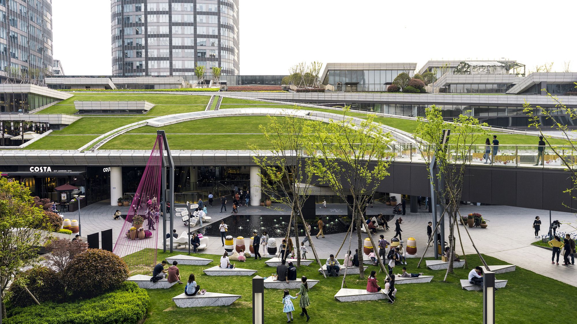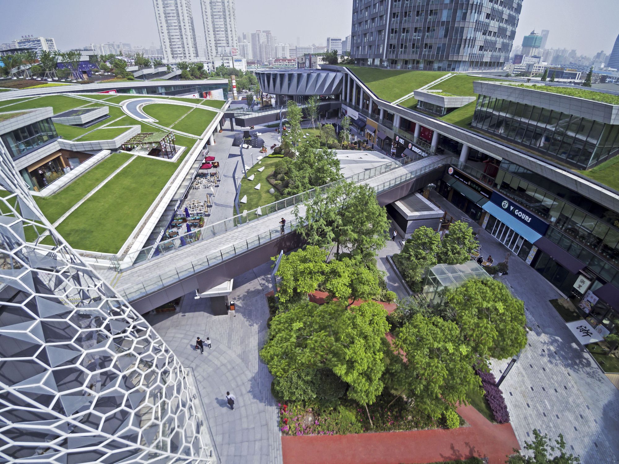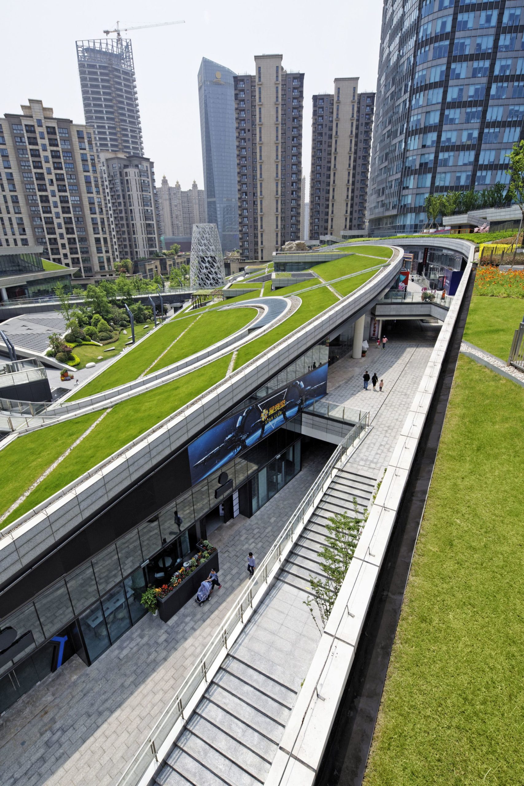 Shanghai Greenland Center designed by Nikken Sekkei, The URBAN FARM where better city meets natural life”, has been the core idea throughout the design. A green urban valley complex with a ‘street landscape park’ as a highlight in the architectural space, is sitting right above one of the most used metro stations in Shanghai.