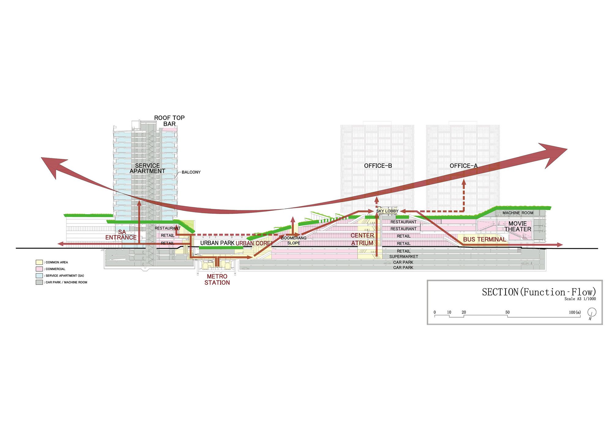 In addition, the URBAN FARM is defined as a TOD project (Transit Oriented Development), with all the functions: Retail, Office and Service Apartment smoothly connected by public transportation. It makes every place within walking distance while creating a new value of developing the urban network, in the rapid development in Shanghai.
