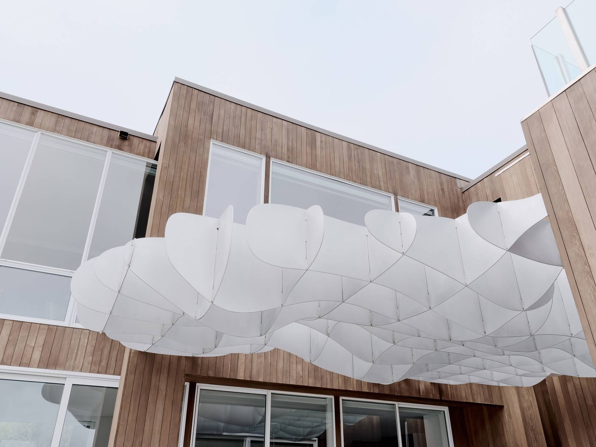In this project, we softened her existing Modernist house by infusing it with an atmosphere of clouds. The clouds scatter freely throughout the house and dissolve and soften it in different ways.